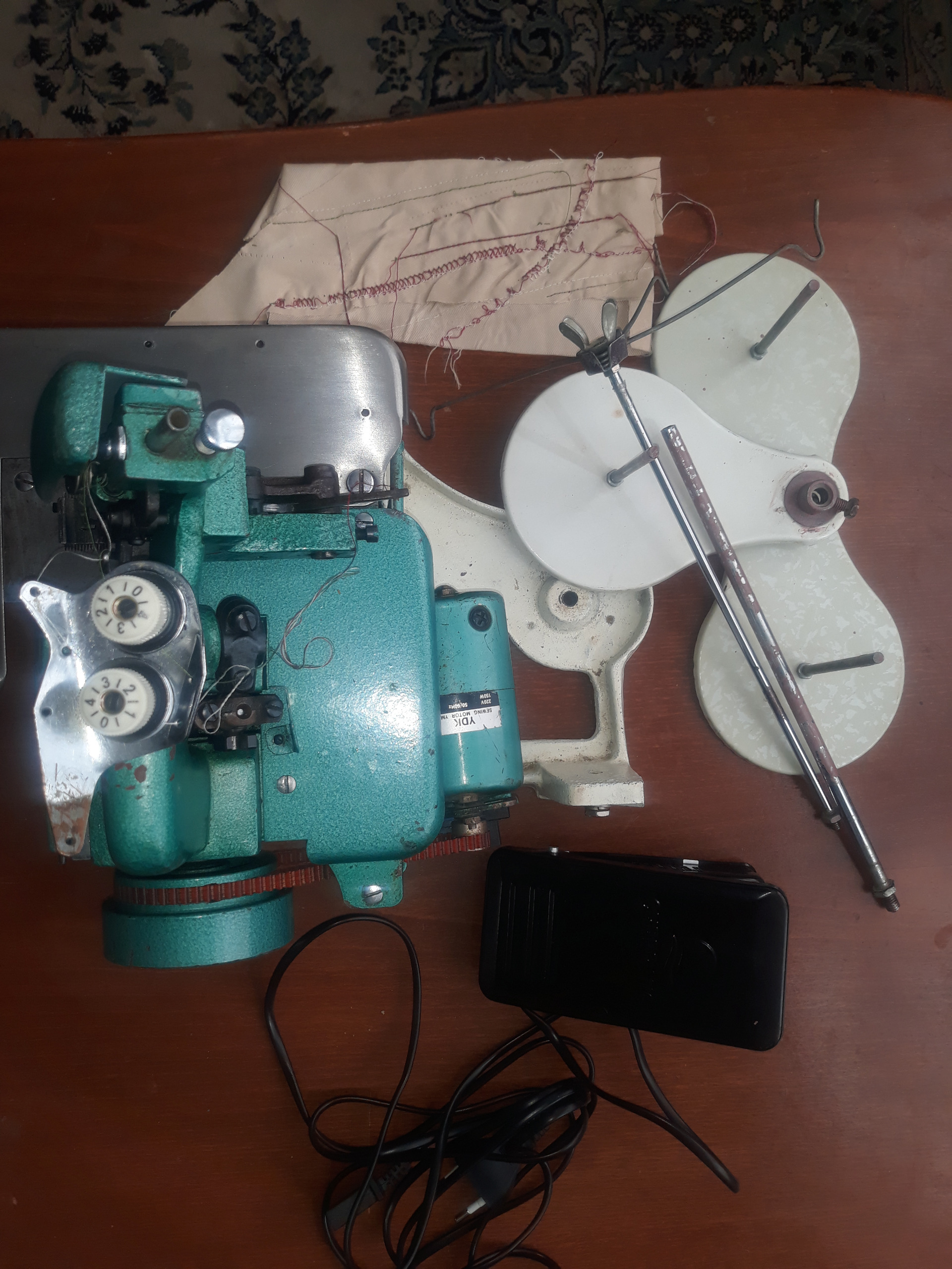 چند سال پیش با تصور اینکه چرخ ریشه بندی باشه خریدم اما فقط ضاهرش در نگاه اول این را نشون میده ولی در واقع چیز متفاوت و برای کاربرد دیگری هست دو تا سوزن در بالا داره و یه قلاب متحرک در پایین که در دو جهت طولی و عرضی حرکت داره. به تعمیرکار چرخ نشون دادمش گفت احتمالا میاندوز باشه نخ کشی کرد و دست و پاشکسته یه دوختی زد که نمونه اش تو عکس هست همون یه ذره بود و دیگه نتونستیم باهاش بدوزیم و دلیل چی باشه نمیدونم. در کل به خاطر اینکه سر در نمیارم پس به عنوان قطعاتش یا برای دکور و یا برای تعمیرکار و مطابق تصاویر میفروشم. هزینه ارسال خیلی بیشتر از تعیین شده ایسام هست و ارسالش هم مشکله اگر مطمین هستی به کارت میخوره بخر