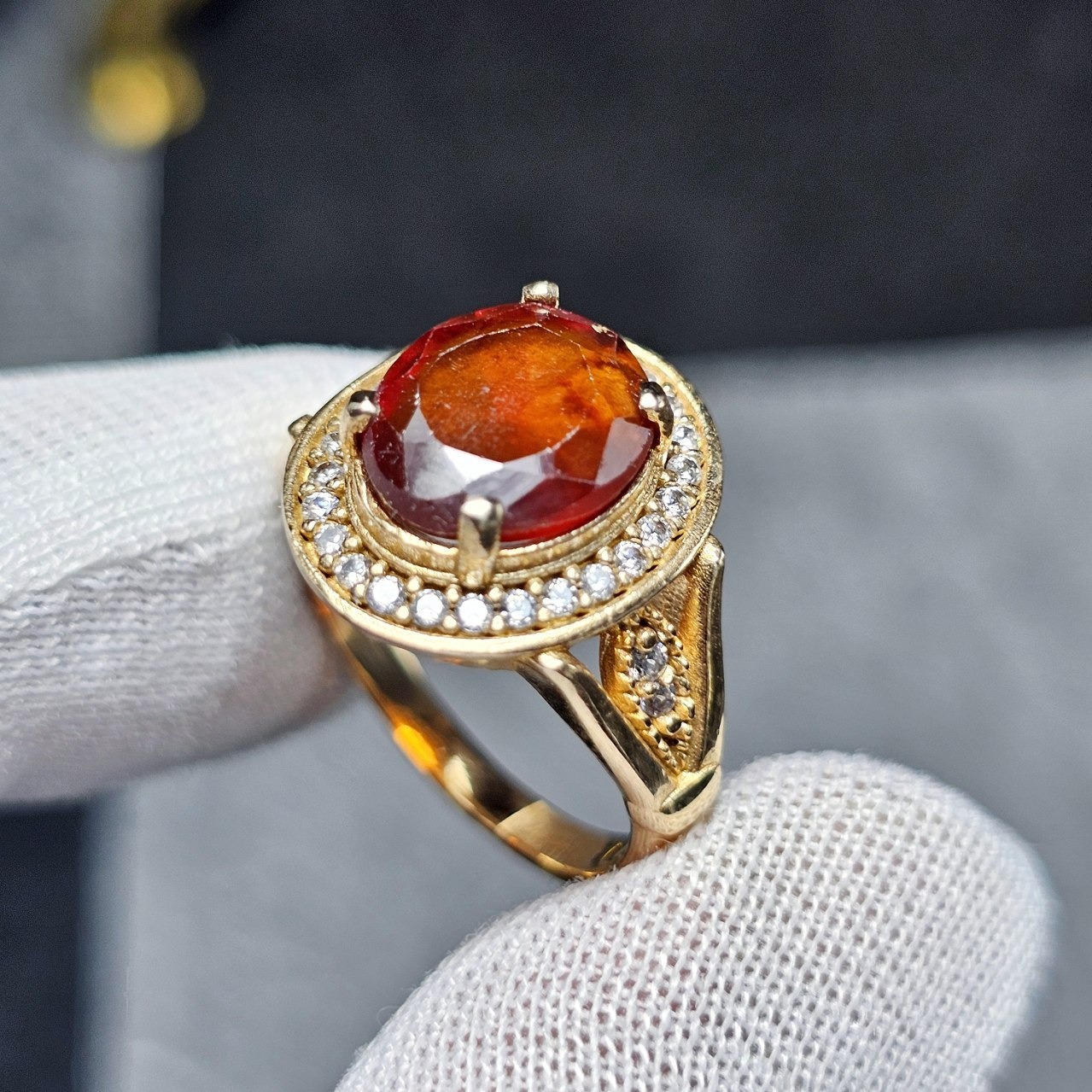 انگشتر طلا روس با سنگ گارنت معدنی کد 36137