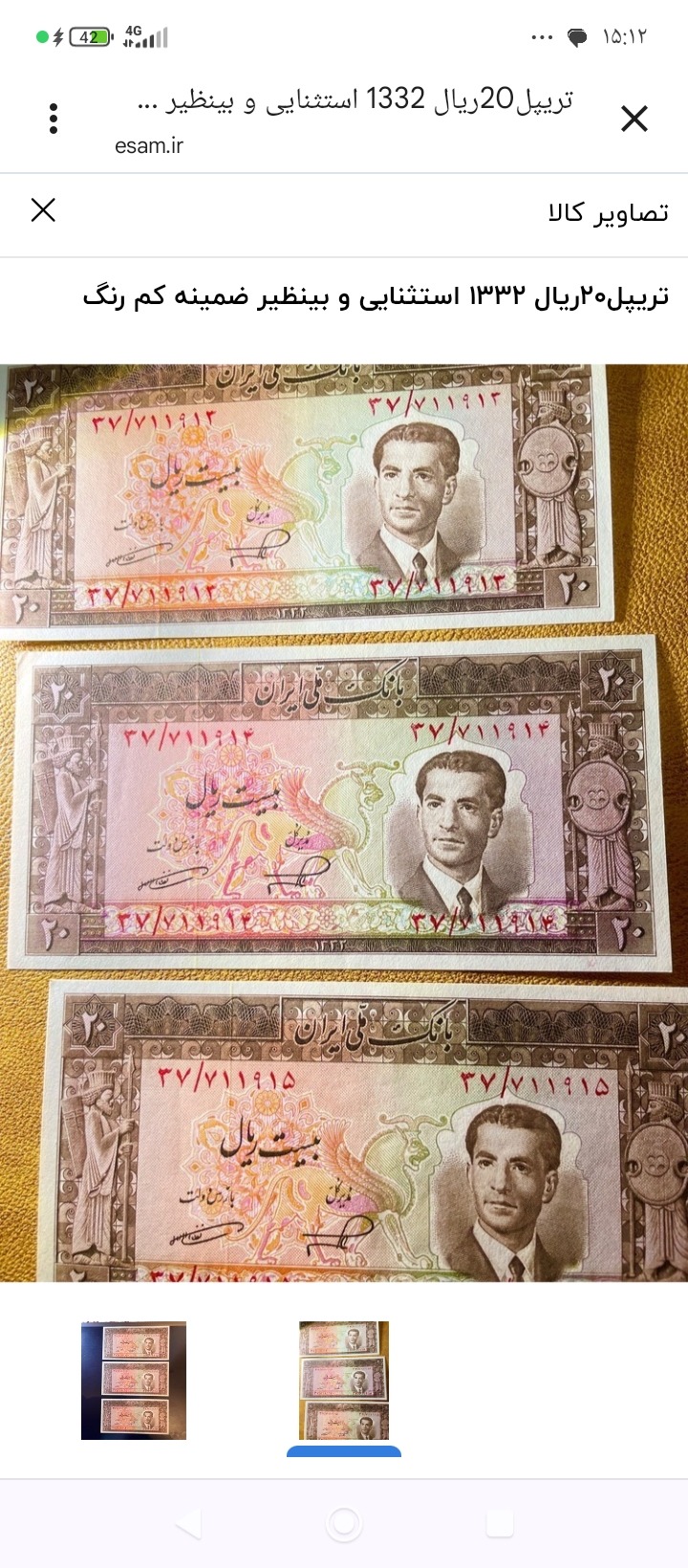 تریپل اسکناس بیست ریالی سری سوم و بسیار کمیاب