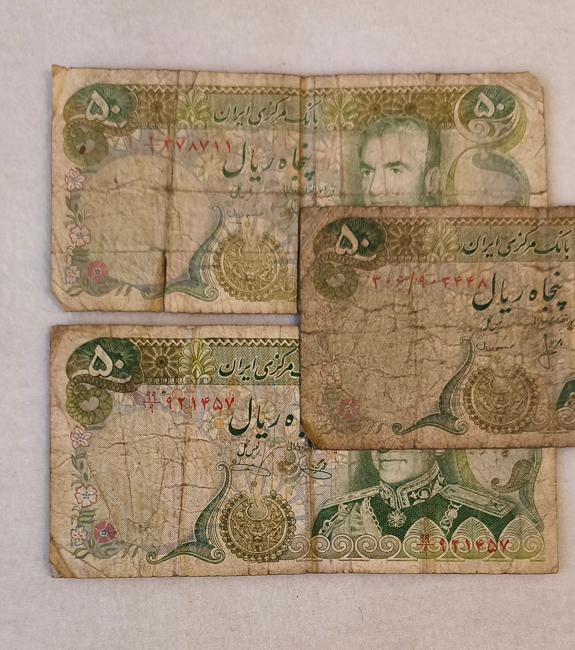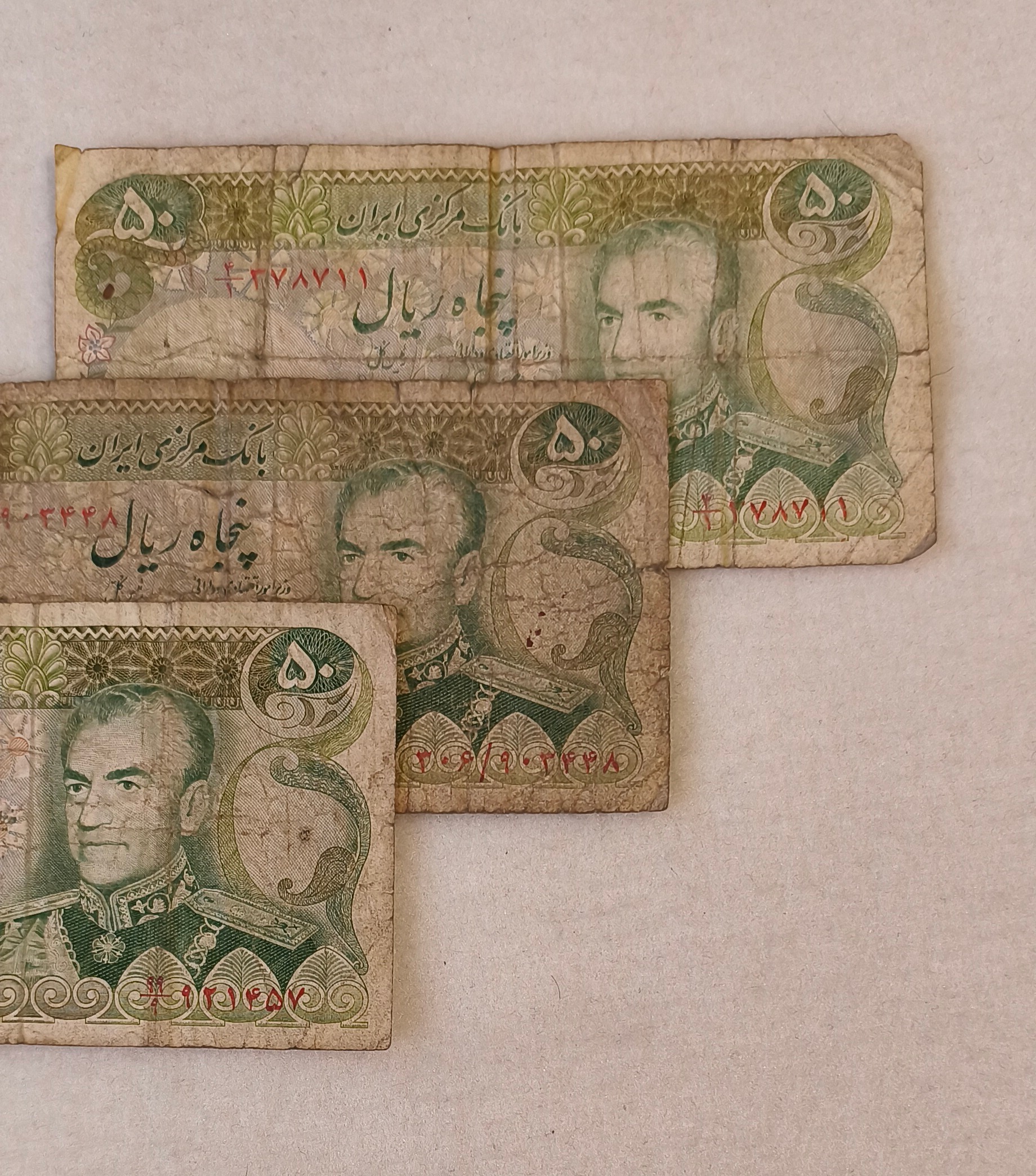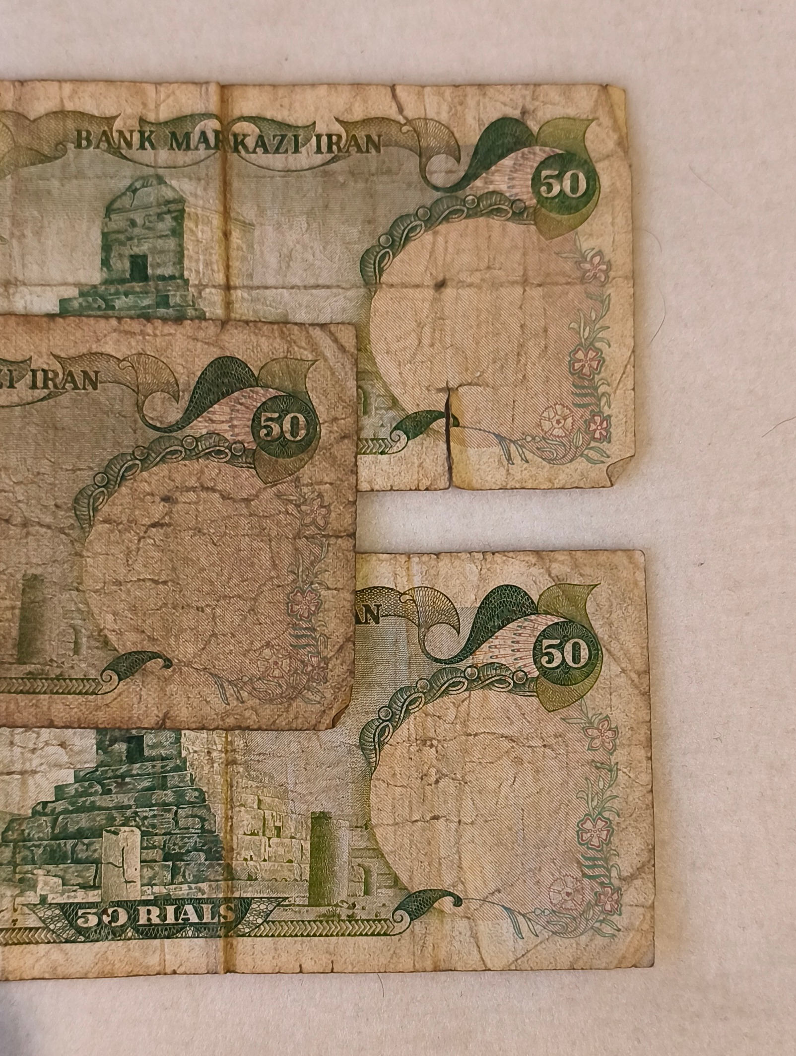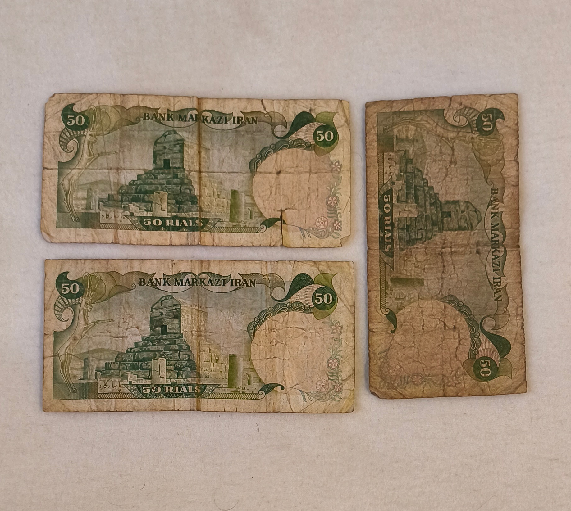 3 برگ اسکناس 50 ریال محمد رضا پهلوی فرسوده ( معیوب )