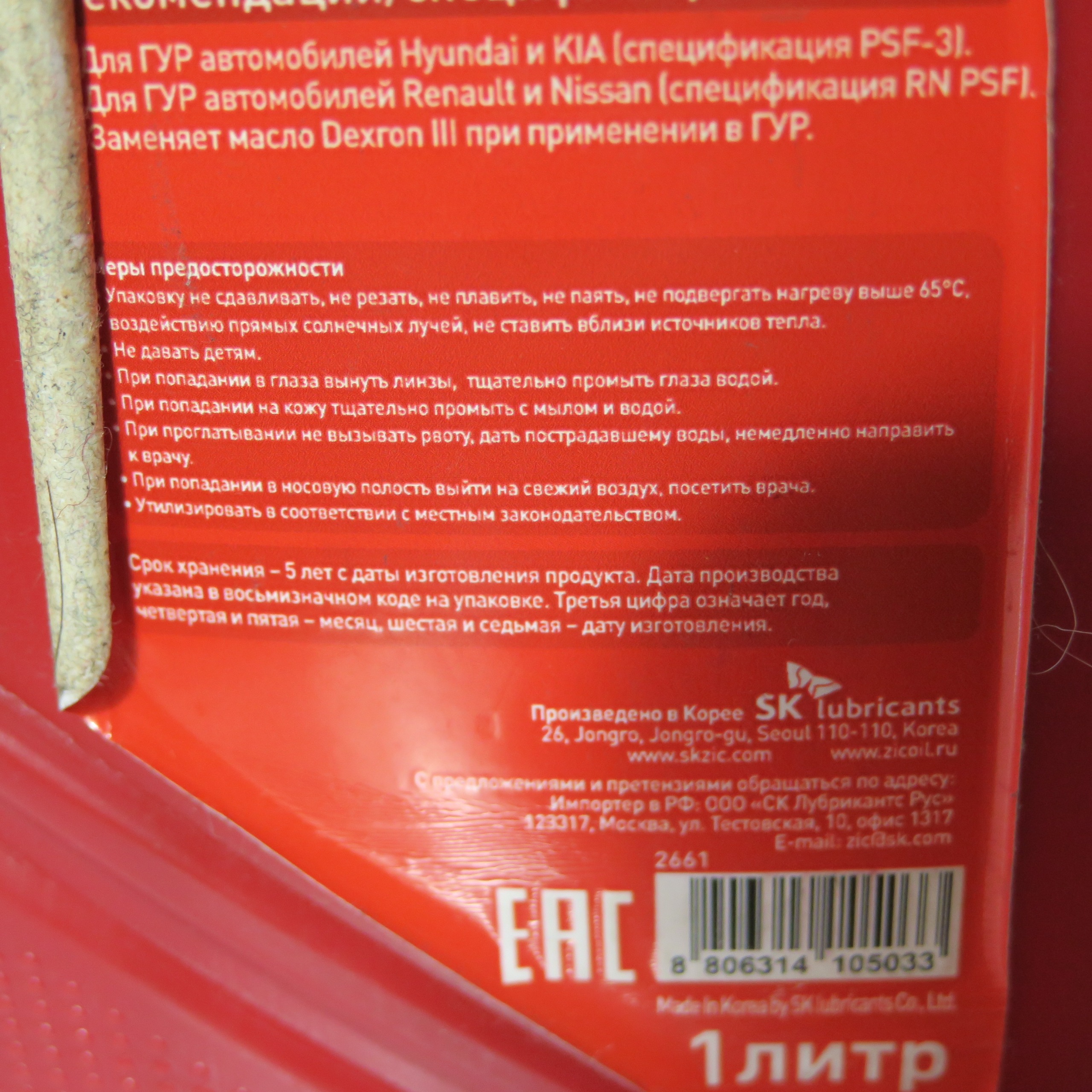 توضیح اینکه: سیال تمام سنتتیک PSF مخصوص فرمان همه خودروهای فرمان هیدرولیک بوده و با استفاده از روغن پایه 3 سنتتیک YUBASE شرکت SK تولید شده است. این روغن در خط تولید کمپانی های کیا، هیوندای و رنو-نیسان مورد استفاده قرار می گیرد.