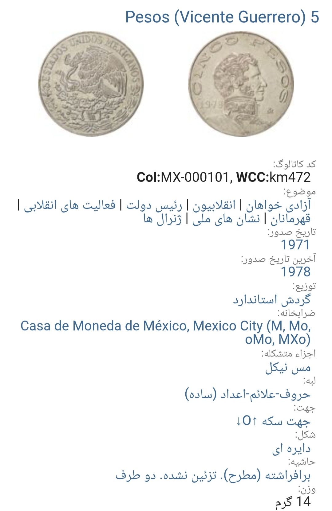 سکه5پزو مکزیک1976 (3806))