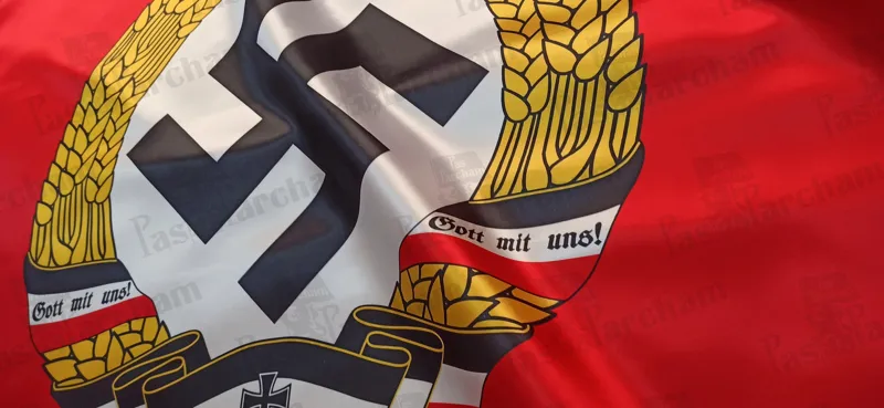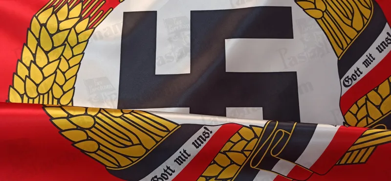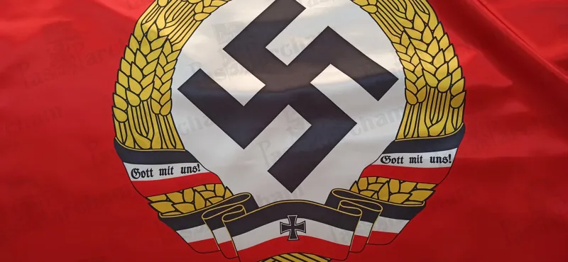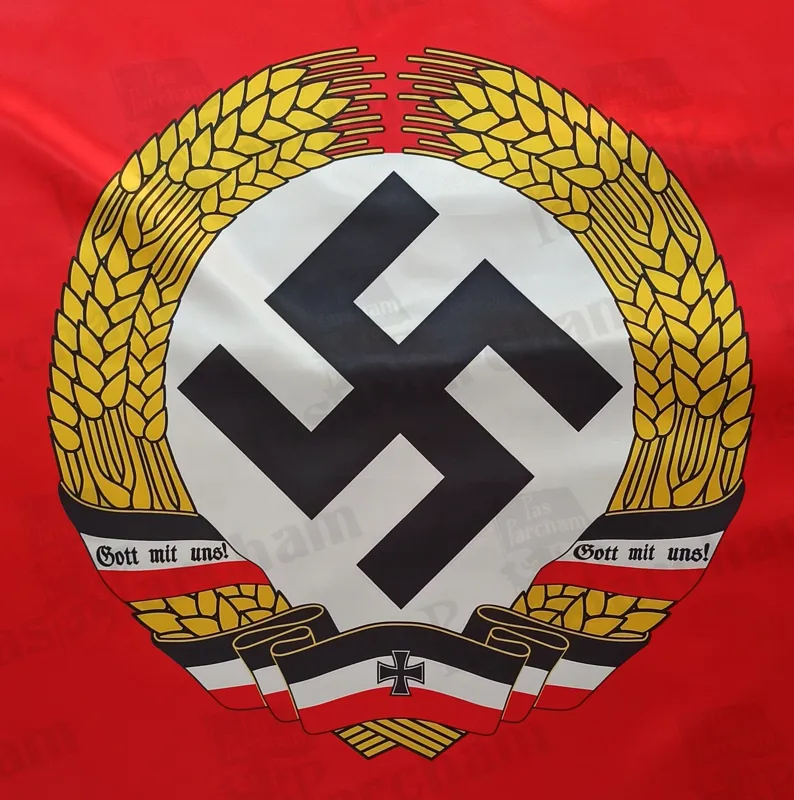 (پرچمی خیالی به مناسبت پیروزی رایش بزرگ آلمانی بر نیروهای بلشویک در شرق و قوای کاپیتالیست در غرب.)