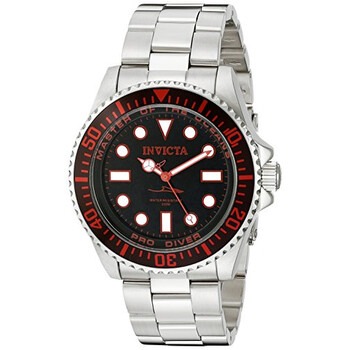 قاب استیل ضد زنگ با بند استیل ضد زنگ. قاب استیل ضد زنگ چرخشی یک جهته با حلقه بالایی مشکی. صفحه مشکی با عقربههای قرمز درخشان و نشانگرهای ساعت نقطهای. نشانگرهای دقیقه در اطراف لبه بیرونی. نوع صفحه: آنالوگ. عقربهها و نشانگرهای شبتاب. موتور کوارتز. کریستال همجوشی شعله مقاوم در برابر خش. دسته کوک (پیچ تنظیم) کشیدنی/فشاری. پشت قاب محکم. قطر قاب: 43 میلیمتر. ضخامت قاب: 12 میلیمتر. شکل قاب گرد. عرض بند: 22 میلیمتر. طول بند: 8 اینچ. قفل تاشو با ضامن ایمنی. مقاوم در برابر آب در عمق 200 متر / 660 فوت. عملکردها: ساعتشمار، دقیقهشمار، ثانیهشمار. سبک ساعت مچی غیررسمی. ساعت مردانه استیل ضد زنگ Invicta