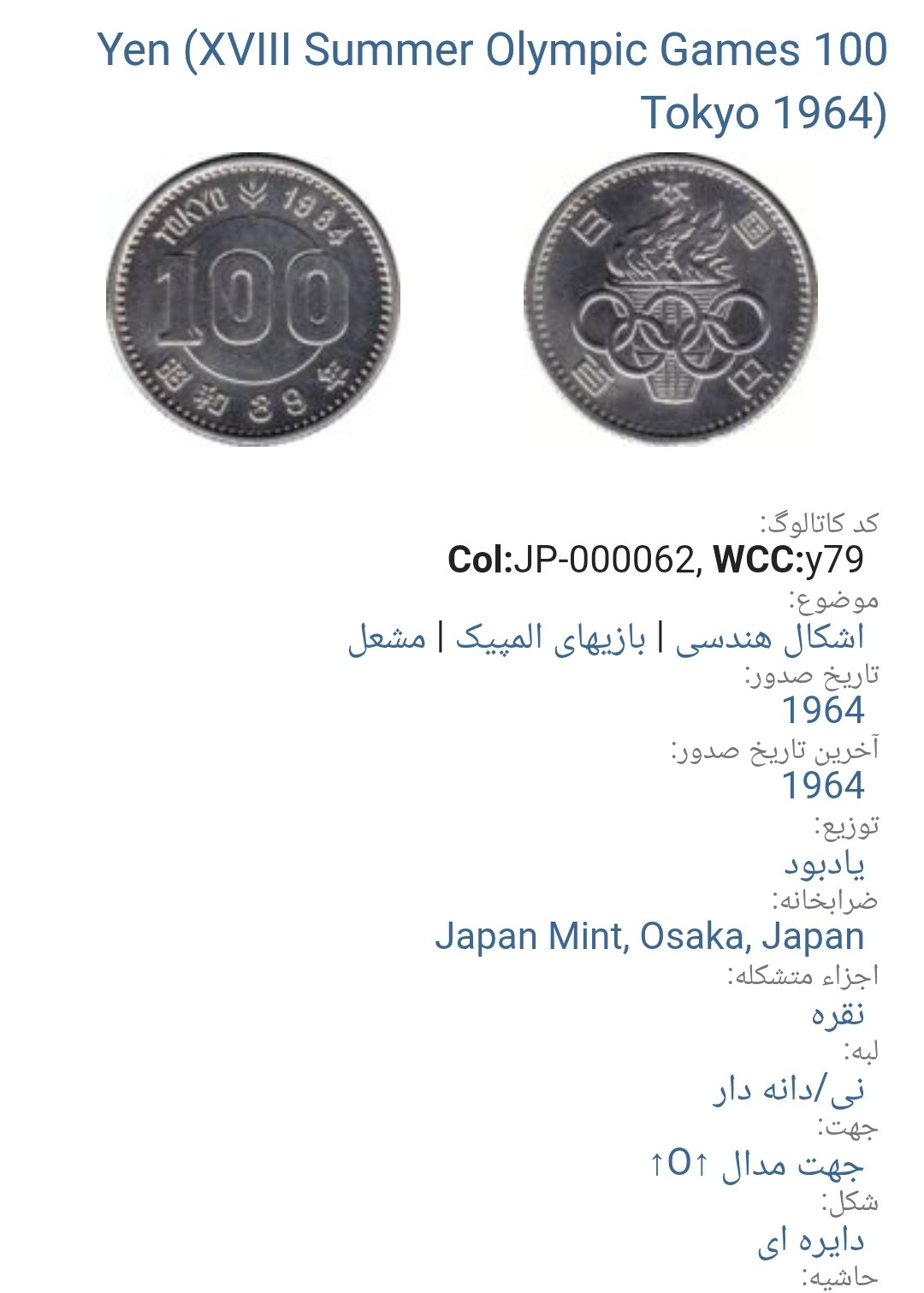 سکه 100ین یادبودی ژاپن 1964نقره(کد5153)