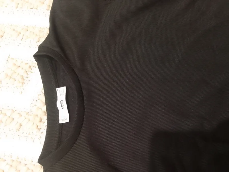 نیم تنه بلوز شومیز تیشرت آستین بلند مشکی ساده اپل دار منگو مانگو mango زنانه دخترانه سایز 36 38 قد 43
