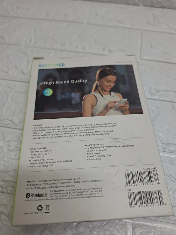 هندزفری بلوتوثی مدل RP-BH1003 راوپاور Wireless in ear neckband sport earphones with hook