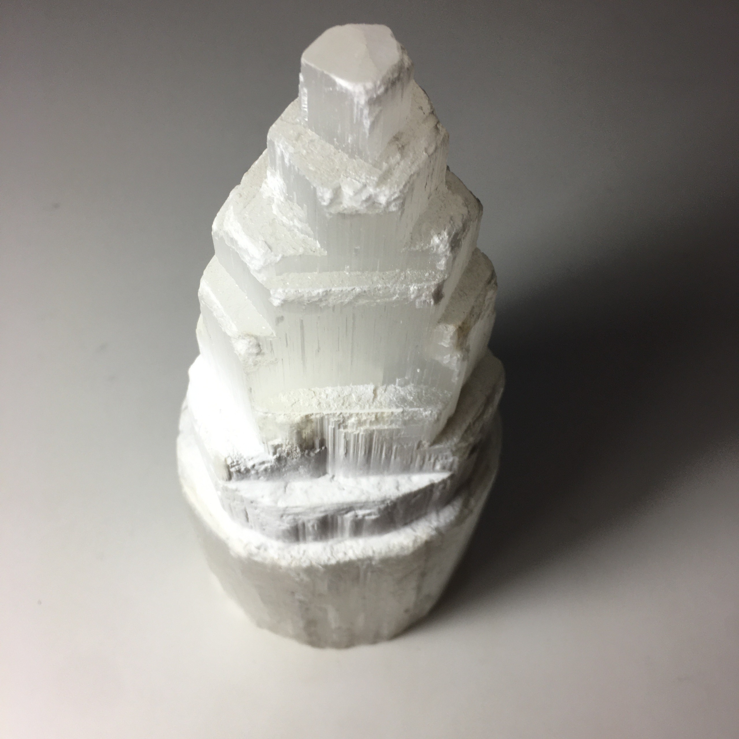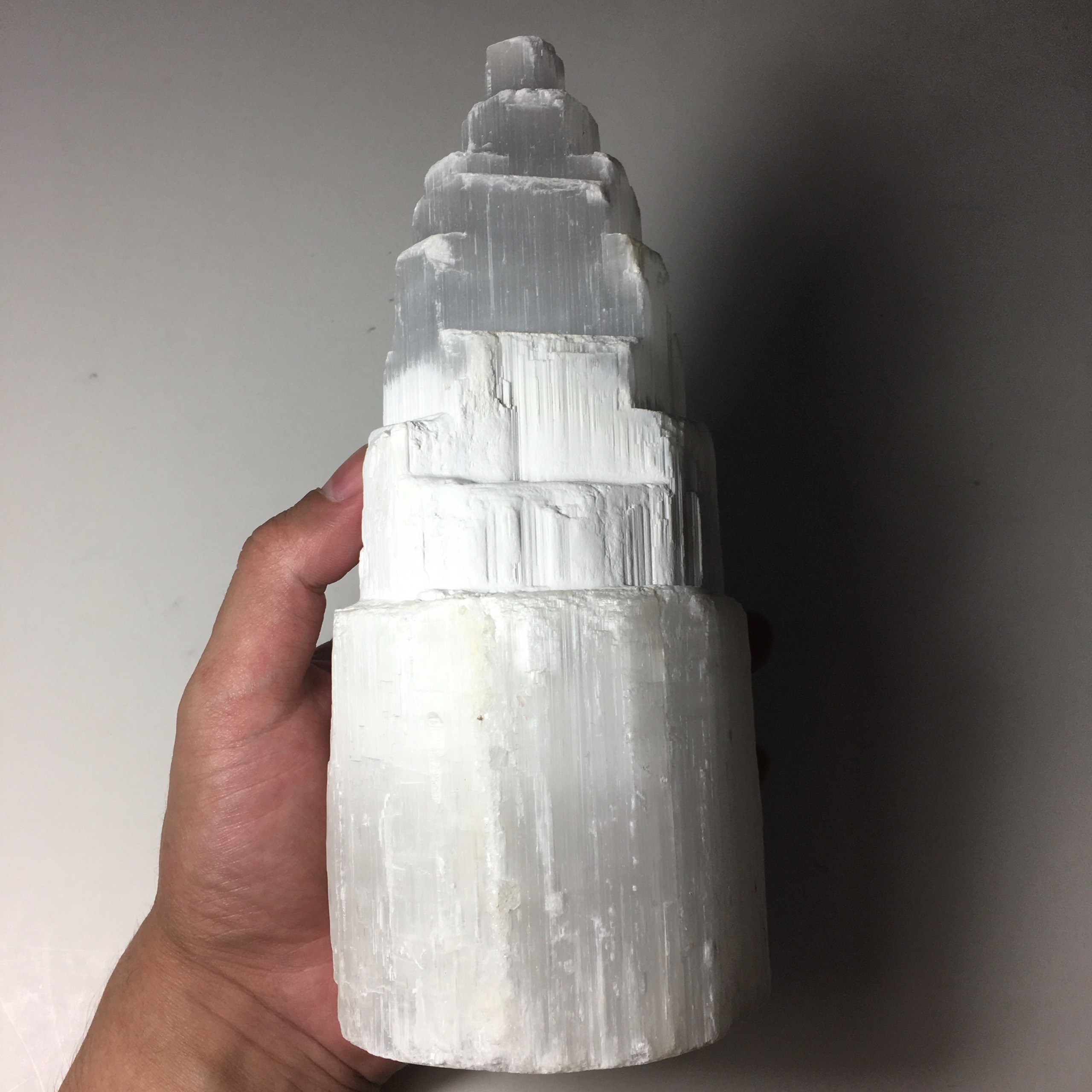 این محصول از سنگ طبیعی سلنایت ساخته شده و به شکل برج پله ای تراش خورده است. در قسمت زیرین، جای مخصوص لامپ تعبیه شده که با روشن شدن، سنگ جلوه ای بسیار زیبا و درخشان پیدا میکند.