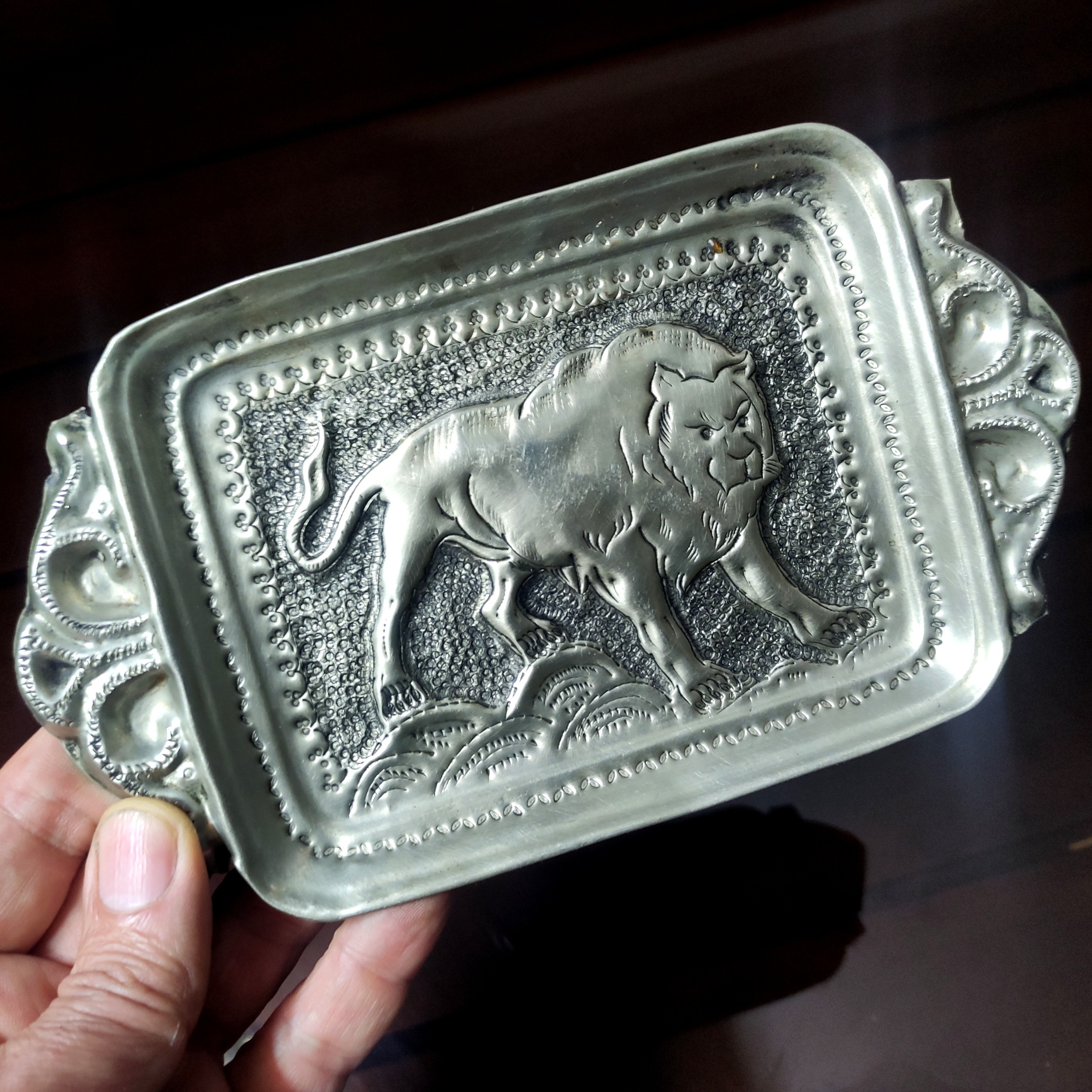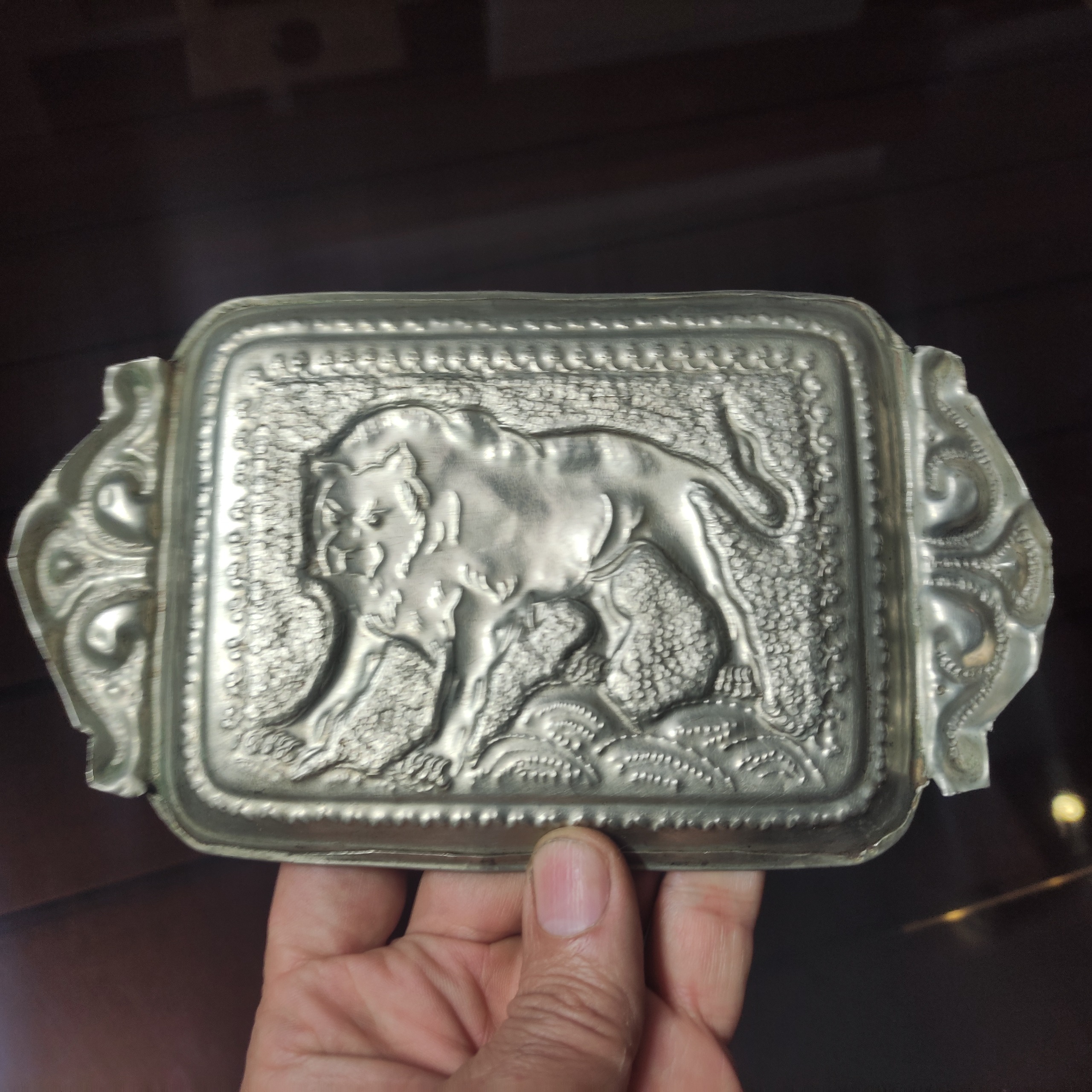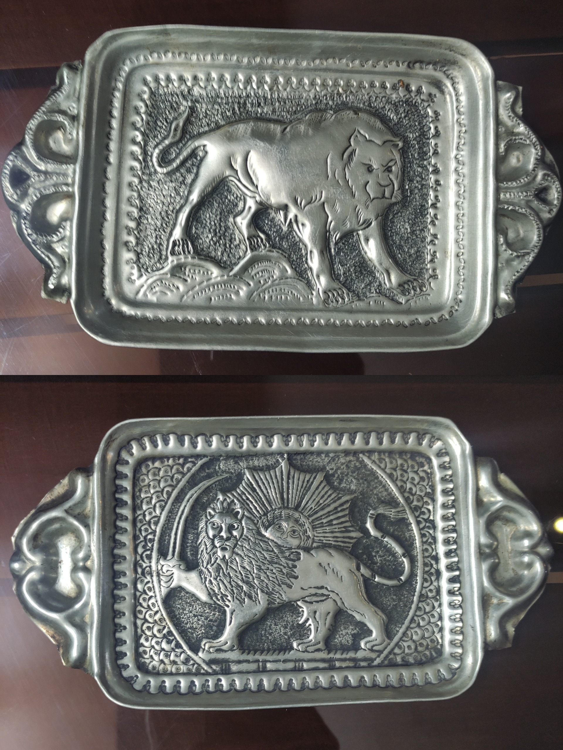 بشقاب آویز قلمزنی شده دیوارکوب ورشو مربوط به دوره پهلوی و اثر دست هنرمندان ایران . ابعاد این بشقاب یا سینی کوچک حدود 16 × 12 سانتیمتر بوده و دارای نقش شیر و خورشید و یکی شیر عظیم ایرانی است که بعنوان سینی پذیرایی یک نفره در منازل و یا مجامع و محلهای عمومی ، روضه ها و چایخانه ها از آن استفاده می شده است..