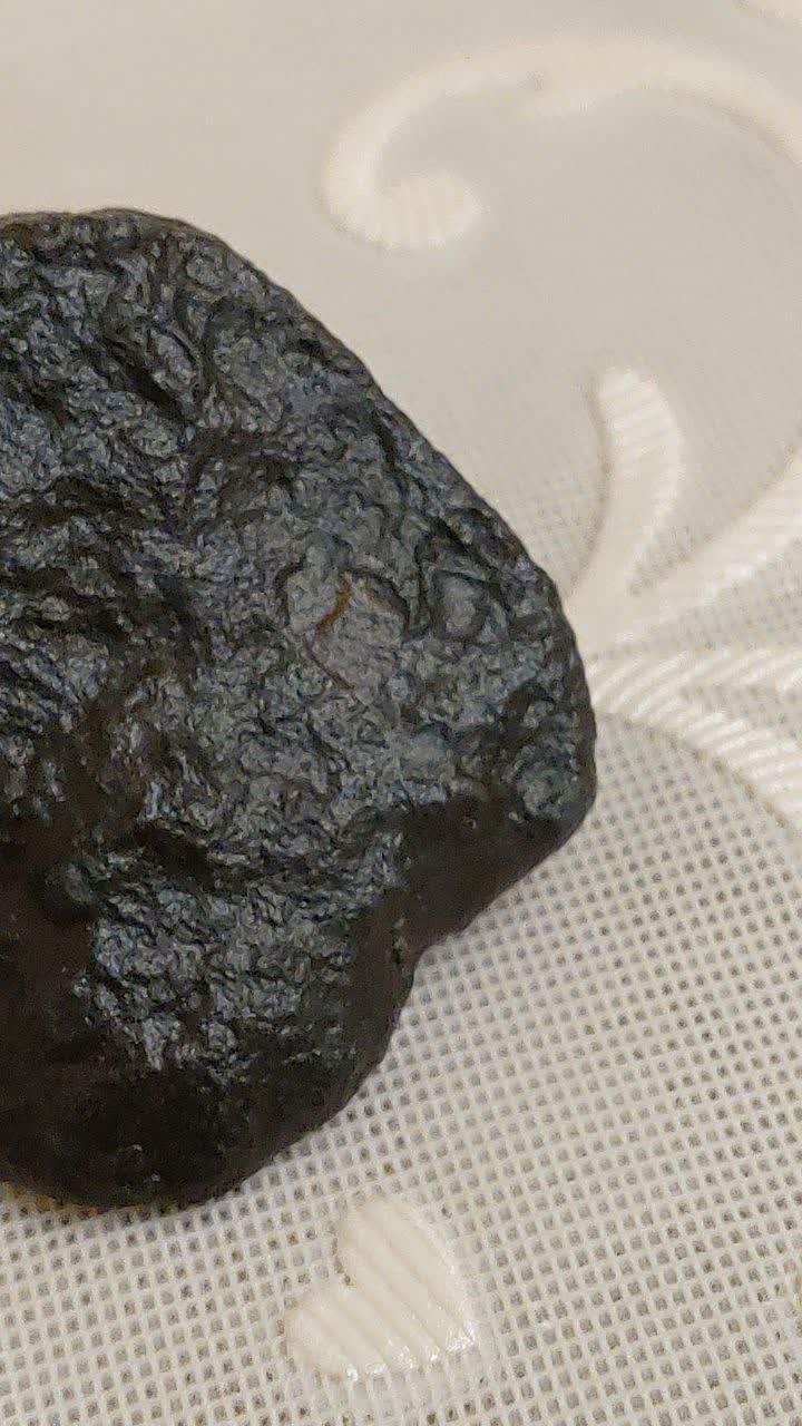 کندرول قهوه ای به وضوح روی سنگ در عکس سوم مشخص است. دارای شیار شوک و پوسته سوخته می باشد.