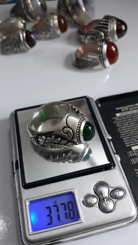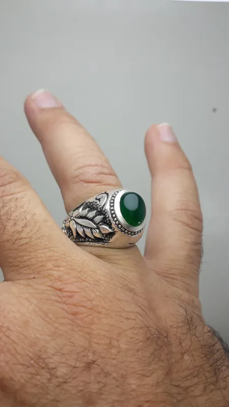 انگشتر نقره دست ساز قلم کاری عقیق سبز معدنی