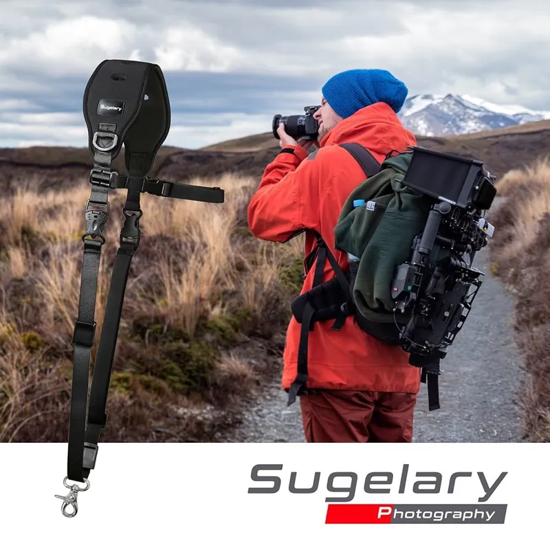 جنس سبک و باکیفیت: ساخته شده از پارچه الاستیک SBR نرم و بادوام و با کارایی بالا، پارچه نئوپرن و اسپندکس راحتی و ایمنی را فراهم میکند. وزن دوربین را به طور مساوی توزیع میکند.