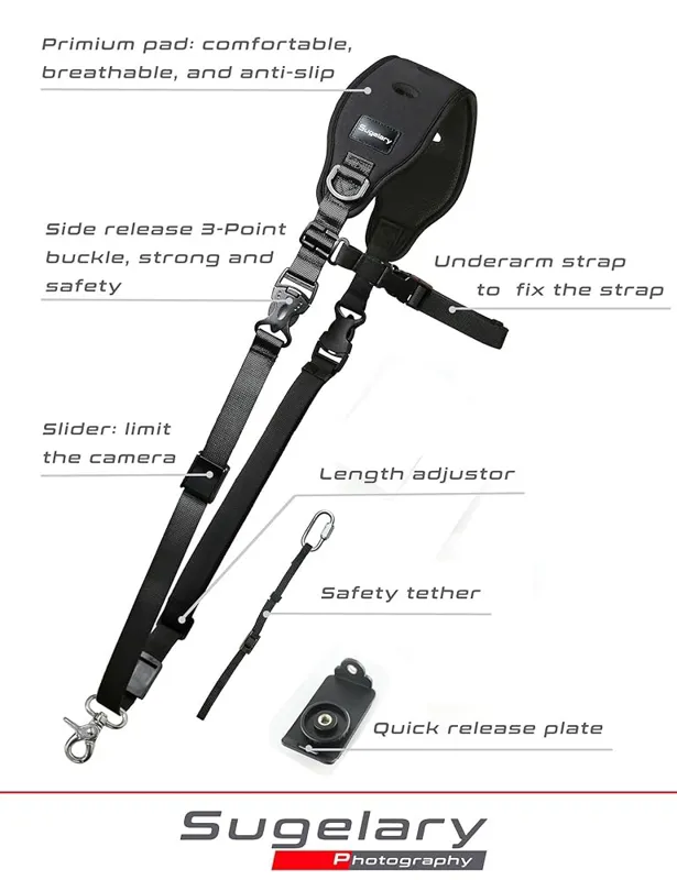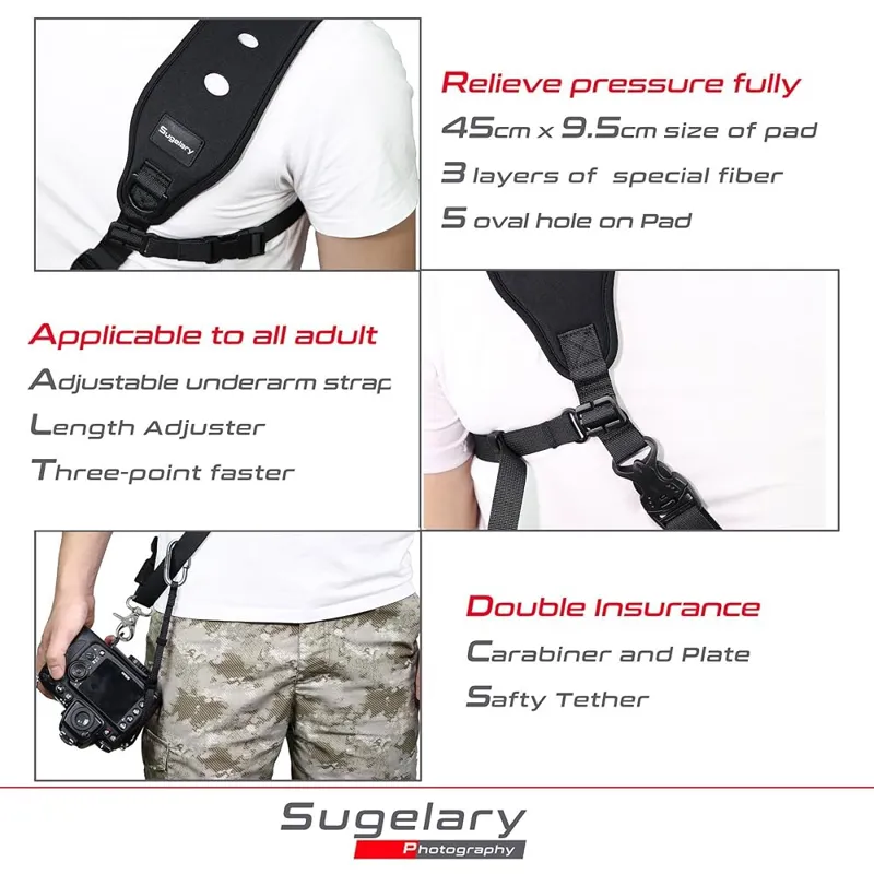 بند دوربین شانهای Sugelary Quick-Release برای دوربینهای کانن، نیکون، سونی، فوجیفیلم، المپوس، DSLR SLR، مشکی