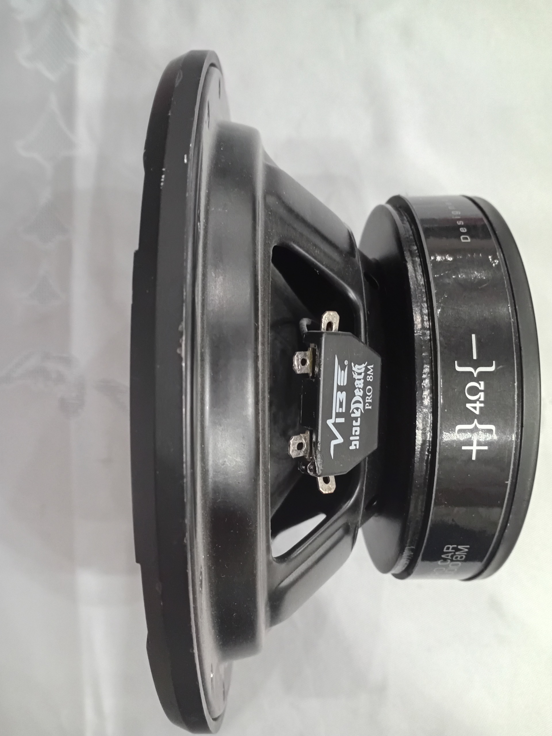 وات ماکسیمم ، 200 وات آر ام اس درحد نو بسیار کم کار کرده ، یک زدگی مختصر در لبه کناری مقوای میدرنج مشاهده می شود که ترمیم شده و تاثیری درعملکرد آن ندارد.محصولات صوتی خودرو کمپانی وایب بلاک دس انگلستان