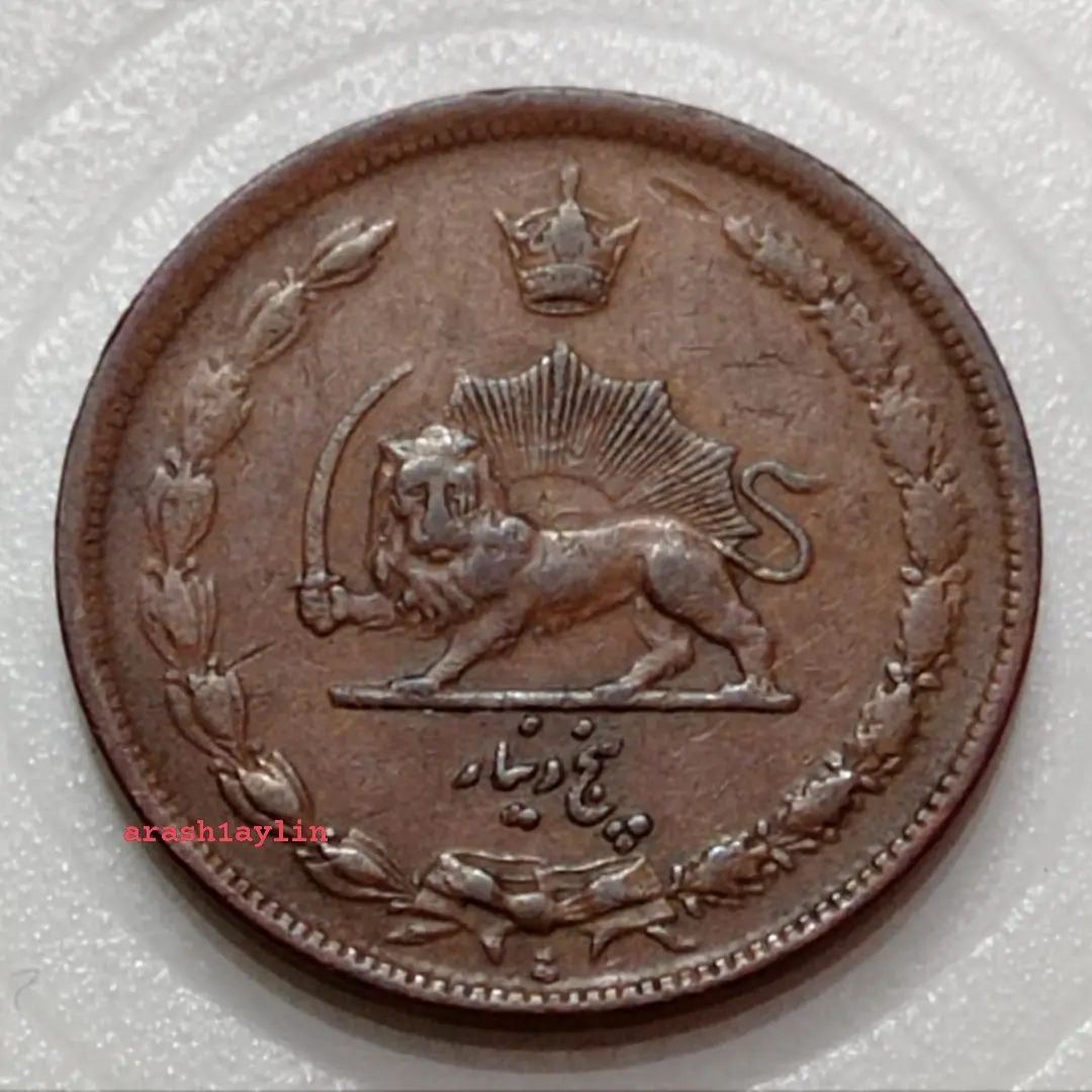 سکه پنج دینار مسی فوقالعاده ارزشمند و کمیاب تاریخ 1314 رضاشاه پهلوی