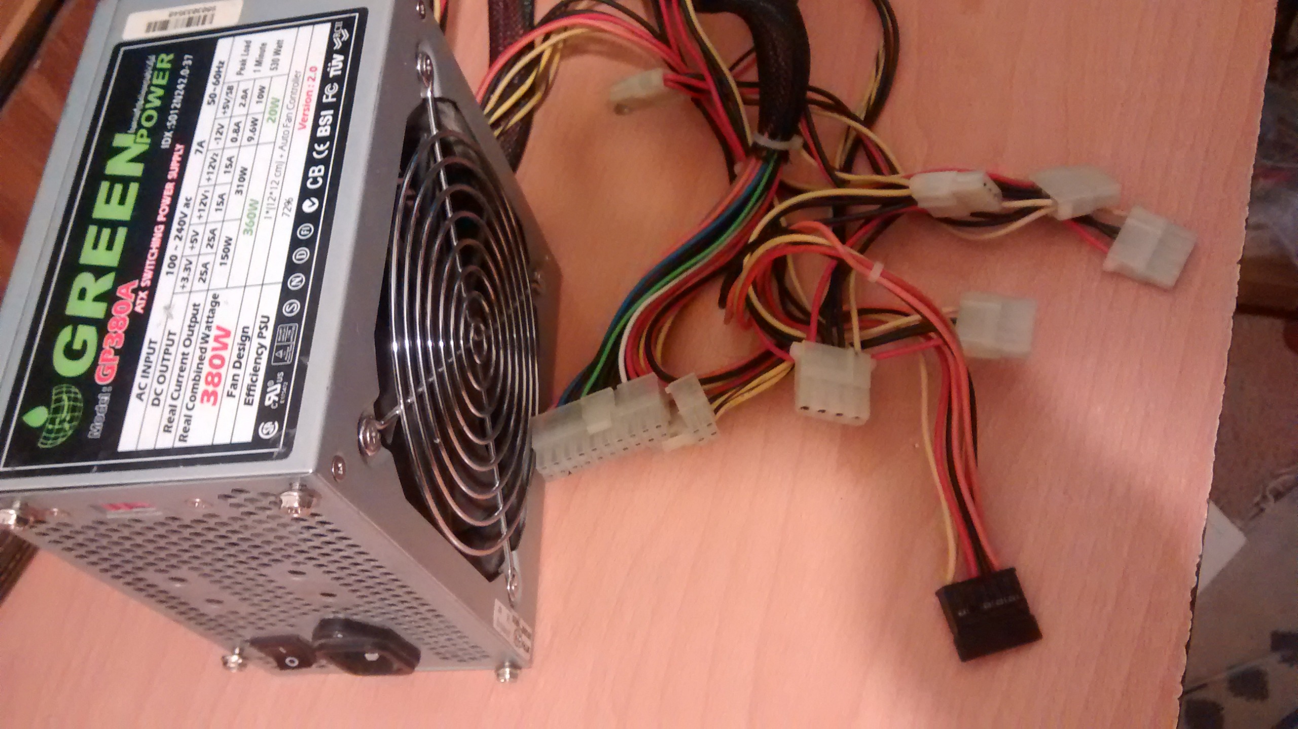 پاور گرین تمیز، یکبار سرویس شده و کاملا سالم است. فن یزرگ، 24 پین، 380 وات قدرتمند با دو عدد پورت ساتا