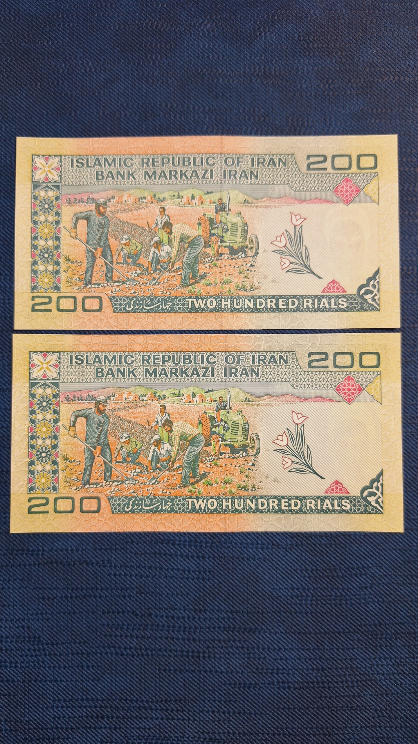جفت اسکناس 200 ریالی جهاد با امضاء صفدرحسینی - شیبانی با. ارور جابجایی امضاء که در تصویر مشخص هست(فاصله امضاء. صفدر حسینی با مناره در دو اسکناس متفاوت است)