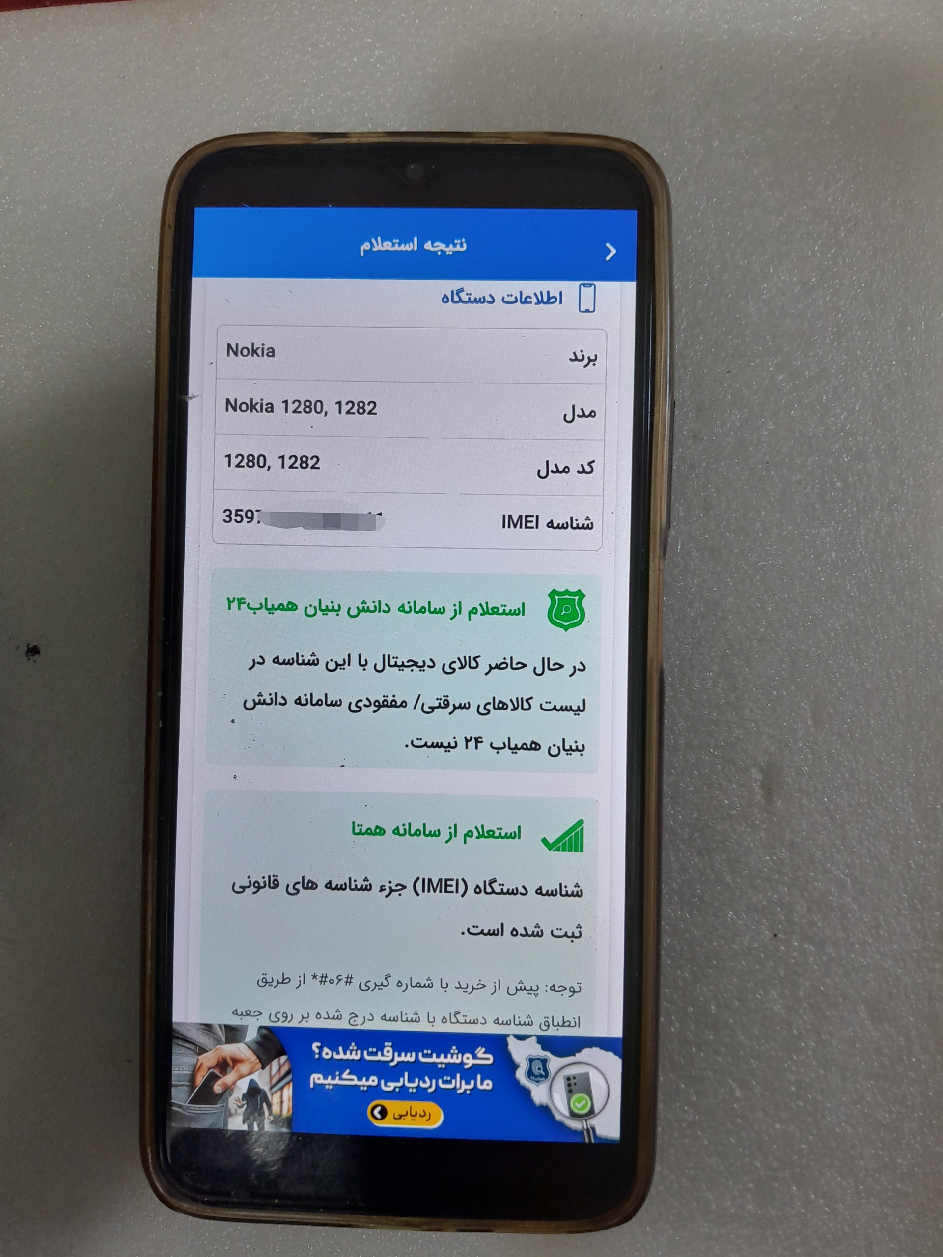گوشی نوکیا اصلی مدل 1280 صحیح و سالم با قاب فابریکی گوشی ثبت سامانه شده وریجستر شده است انتن دهی عالی صدارفت و برگشت عالی فقط خود گوشی و یک باتری نو با شارژر برای خریدار ارسال میشود کارتون و انتقال مالکیت نداره سوالی بود قبل از خرید بپرسید گوشی طبق عکس برای خریدار ارسال میشود مرجوعی پذیرفته نمیشود