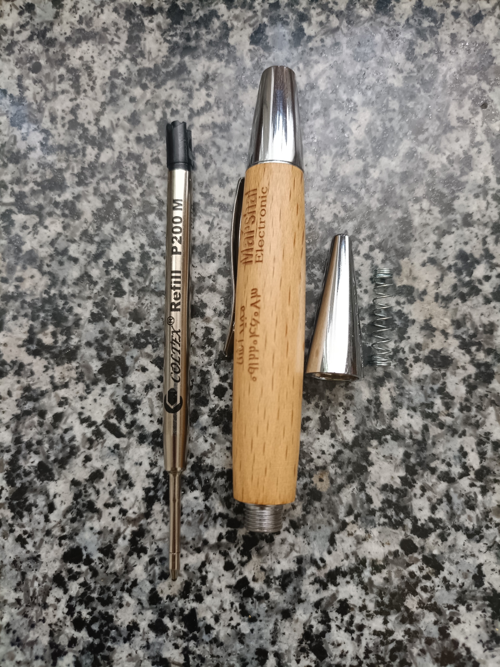 طول 12.5 سانت بدنه ترکیبی از چوب و استیل بسیار شیک و لاکچری مخزن خودکار نیاز به پر کردن جوهر داره و همه ی اجزای خودکار کاملا سالم هست