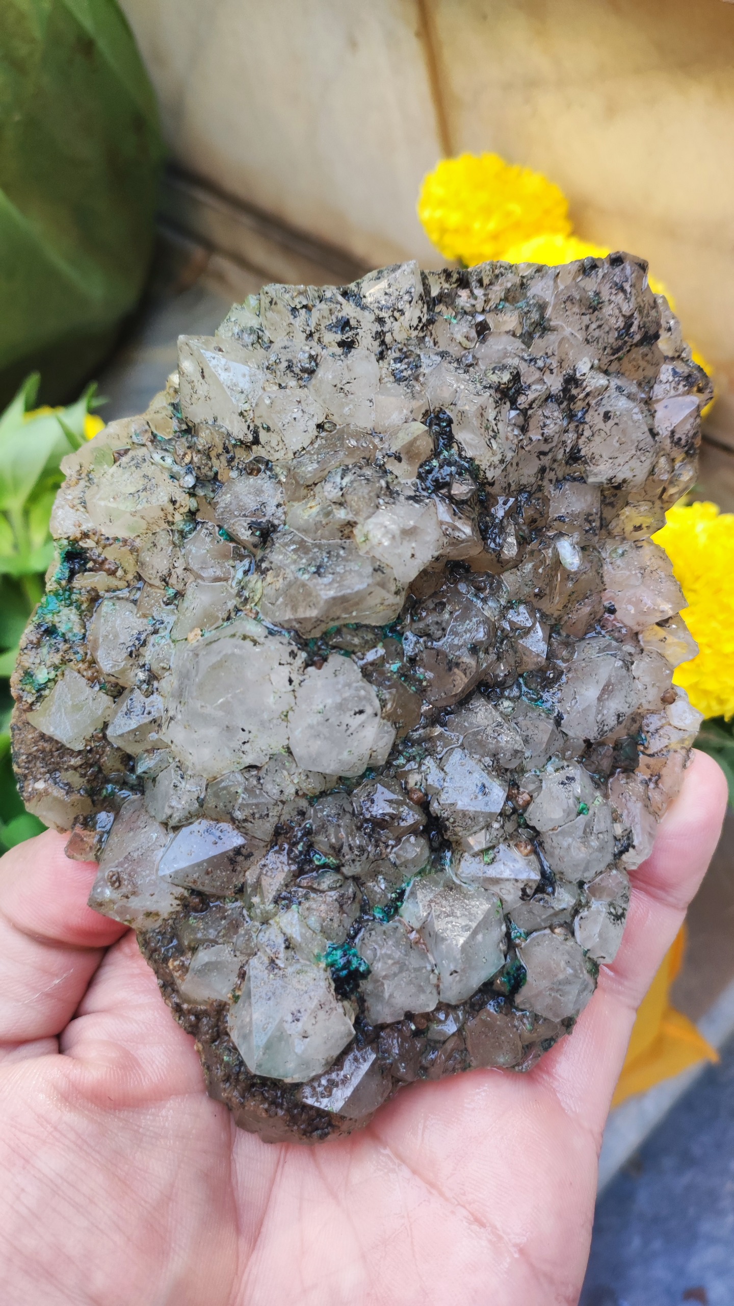 سنگ منشوری کوارتز دودی کم رنگ،وزن 565گرم