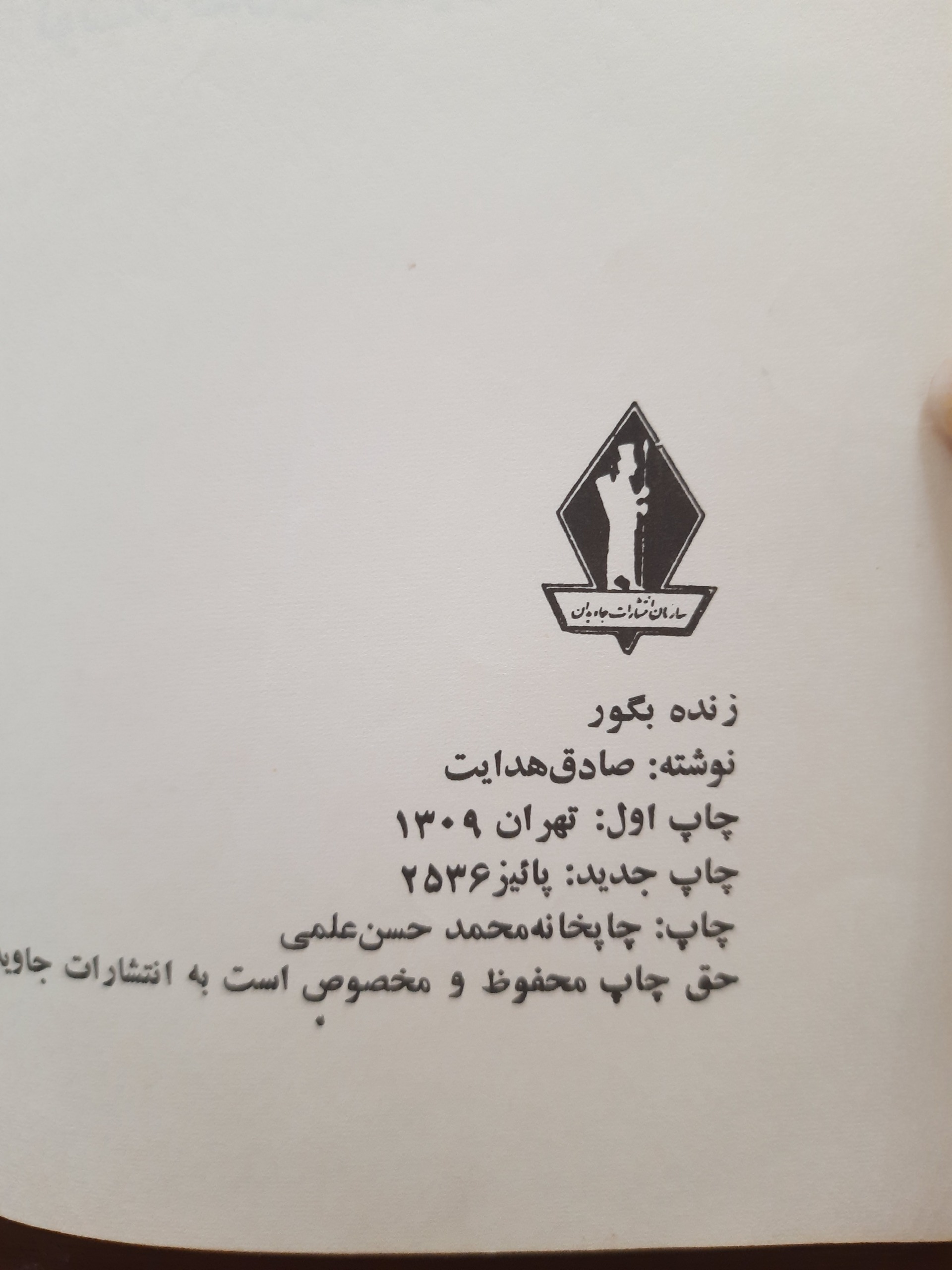 زنده بگور/صادق هدایت/چاپ اول/سال1309 نایاب
