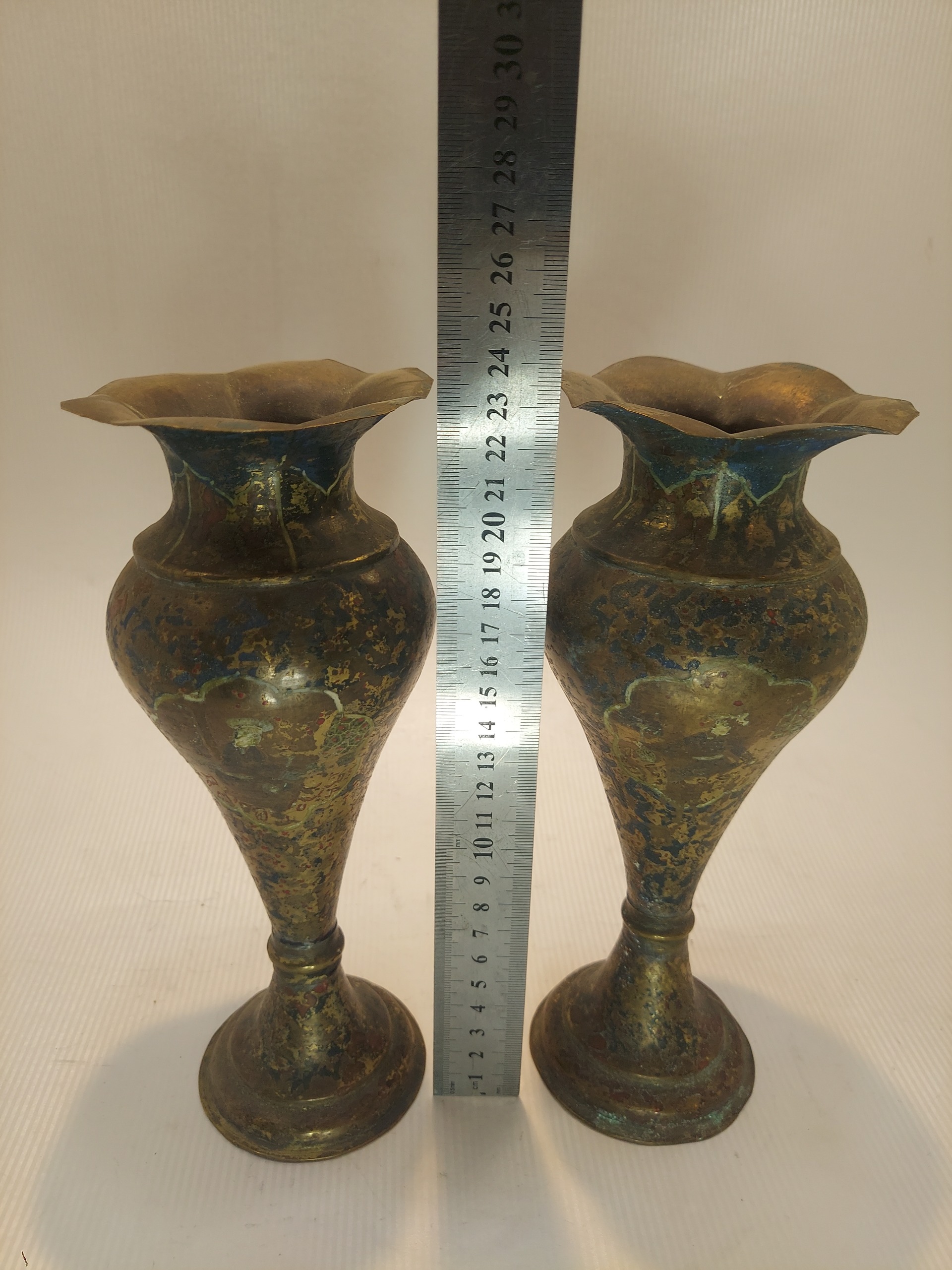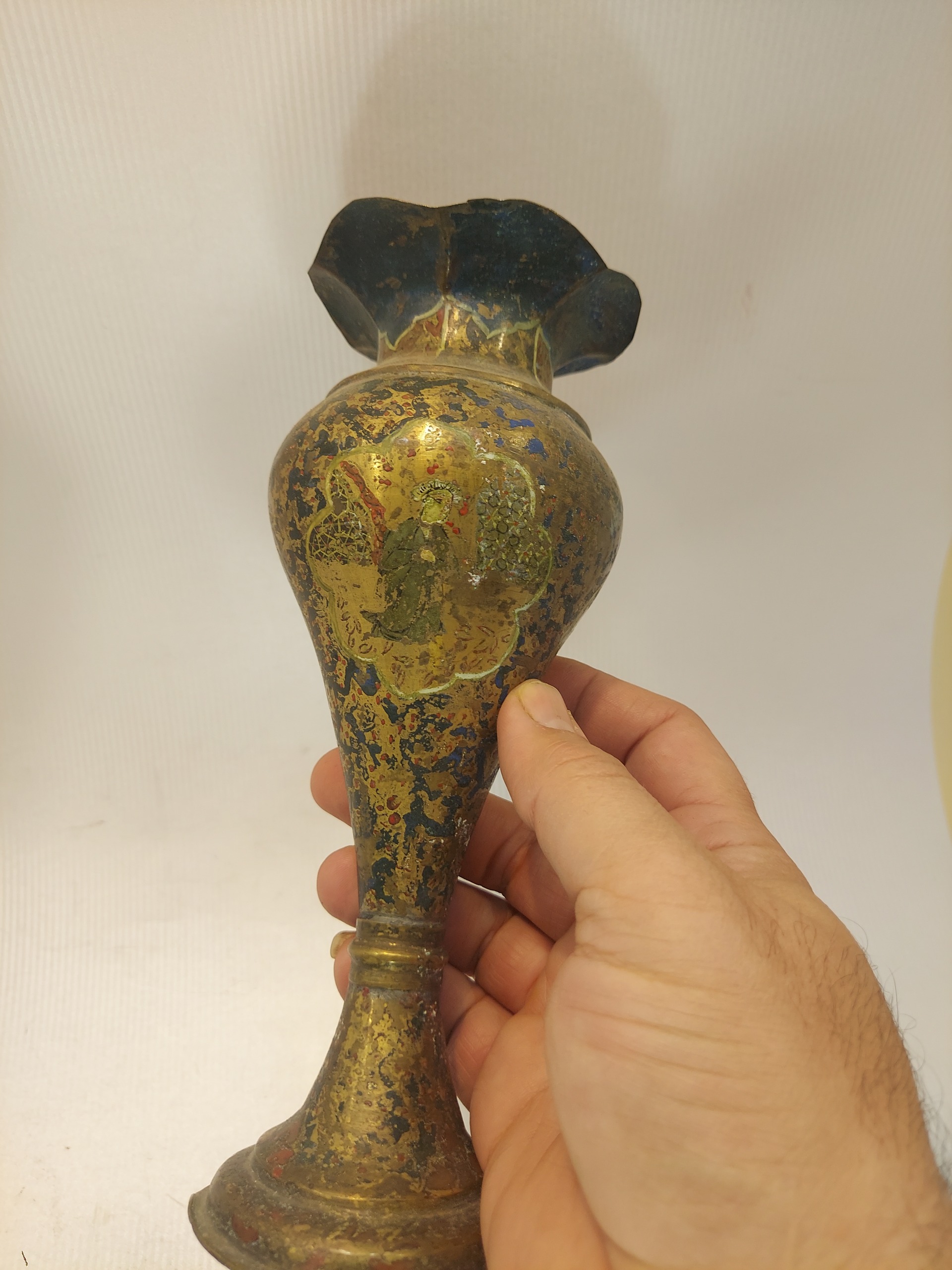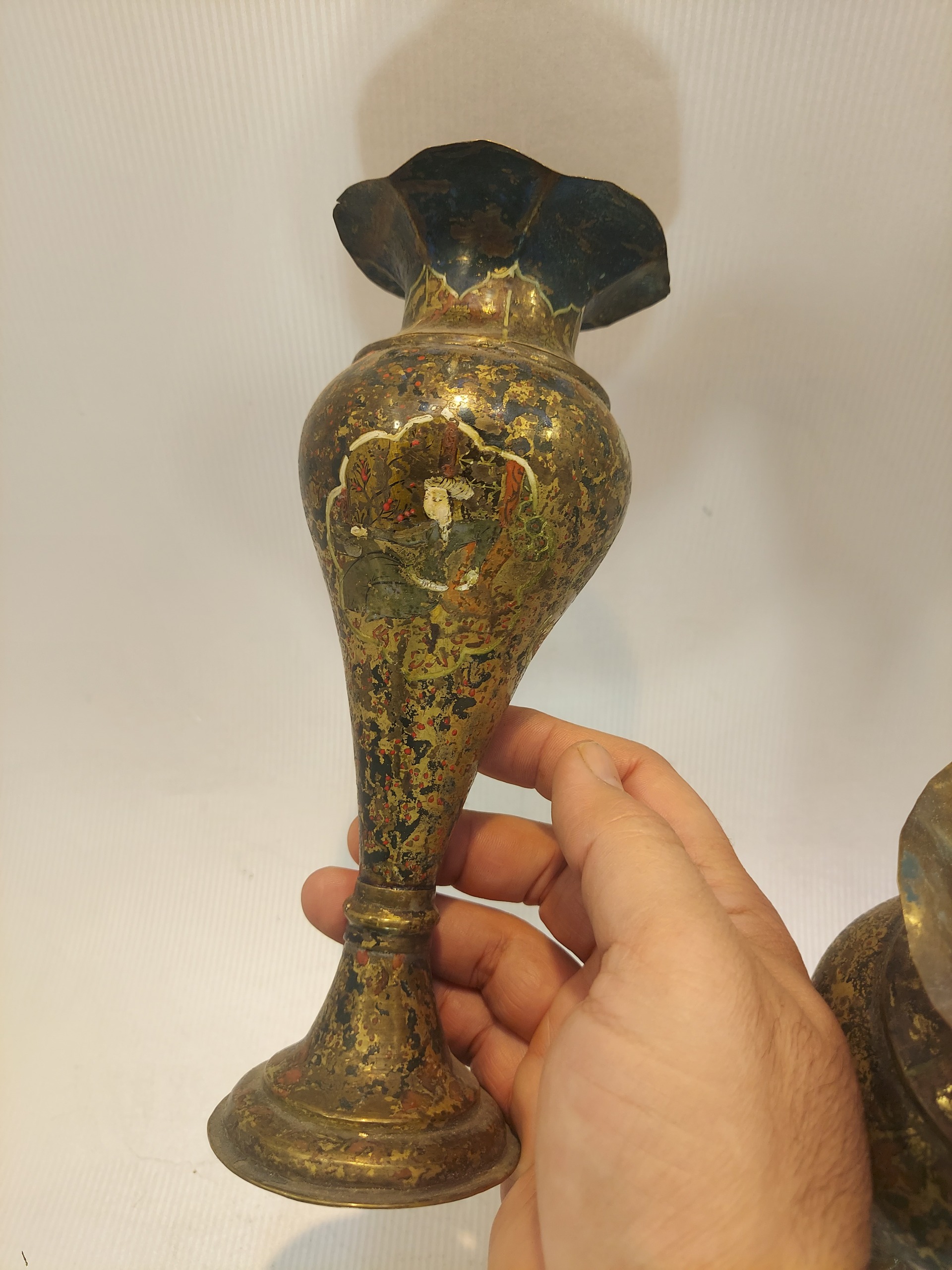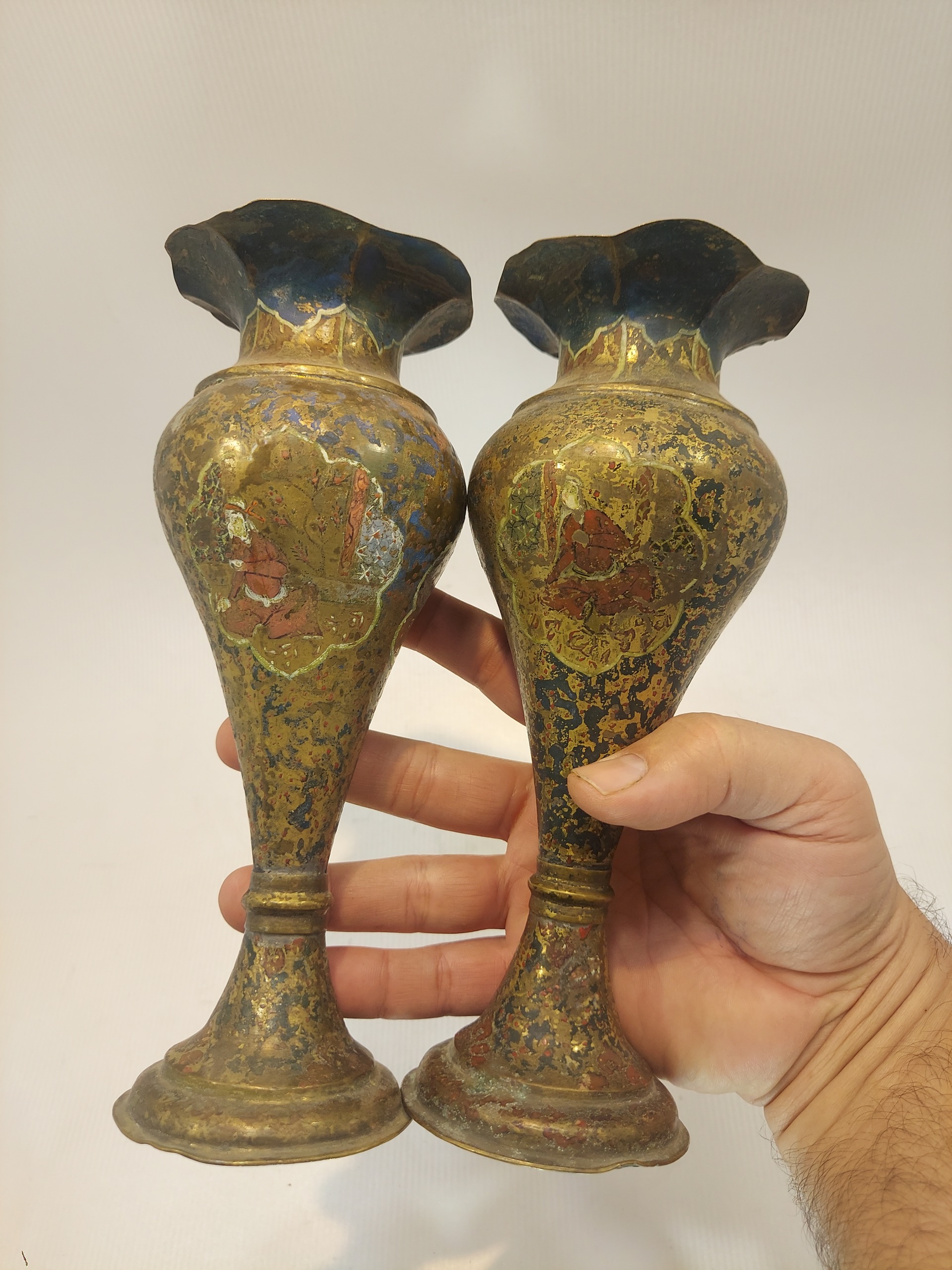 جفت گلدان برنجی تمام نقاشی مینا قاجاری