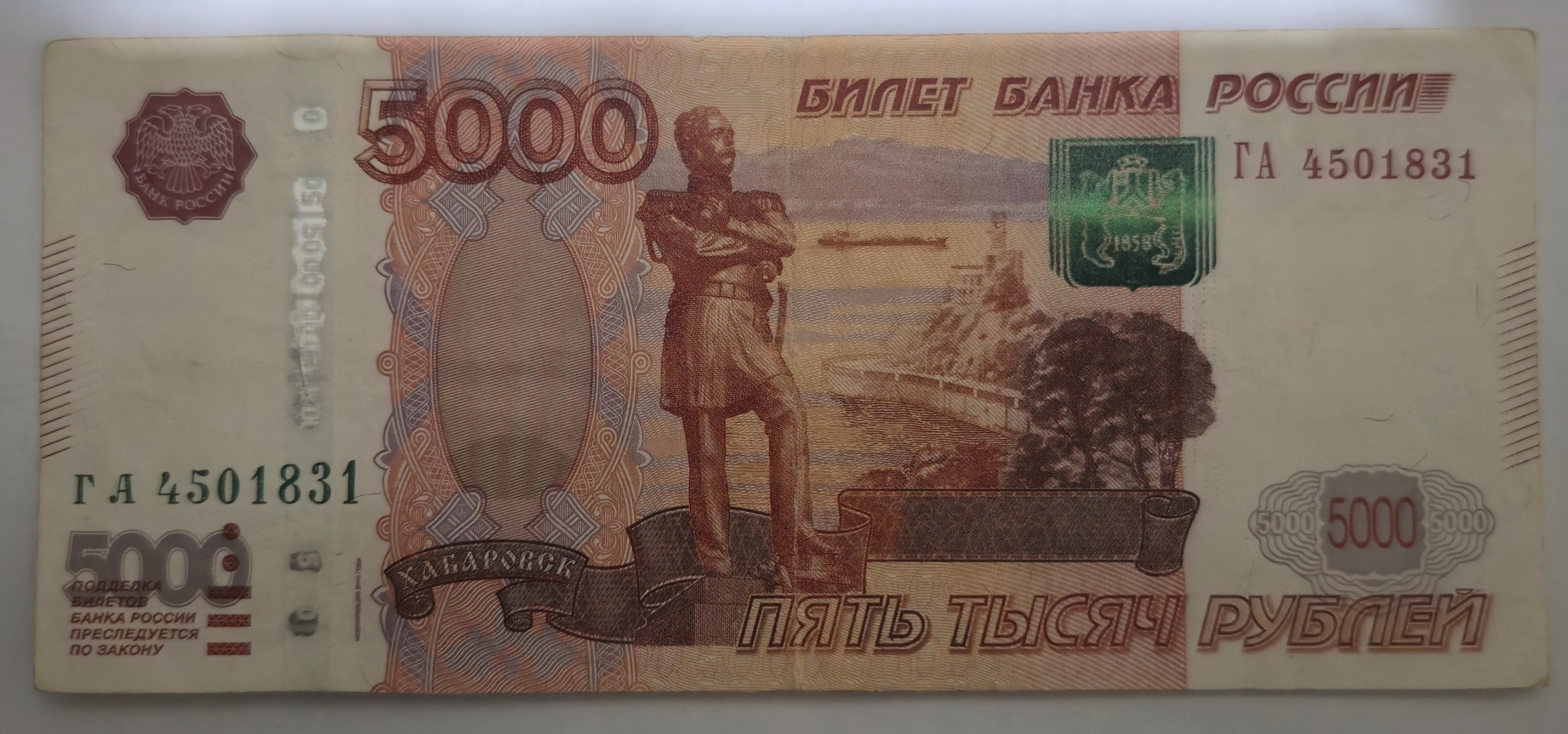 اسکناس زیبا و رایج 5000 روبل روسیه هولوگرام دار
