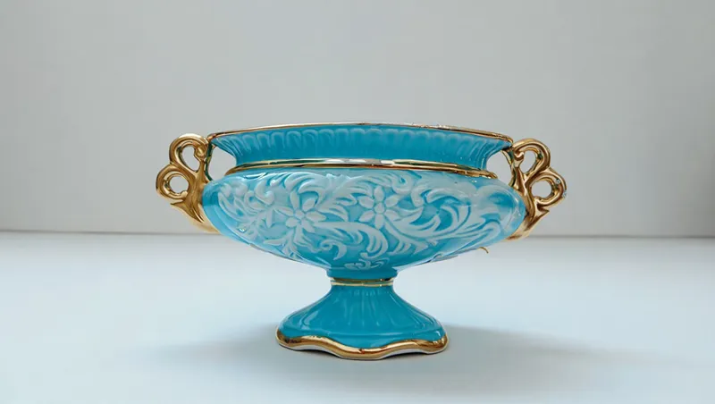 گلدان سرامیکی قدیمی ایتالیایی مدل کشکولی دسته دار به طول 30 سانت و عرض 10 سانت.با نقش شکارگاه .