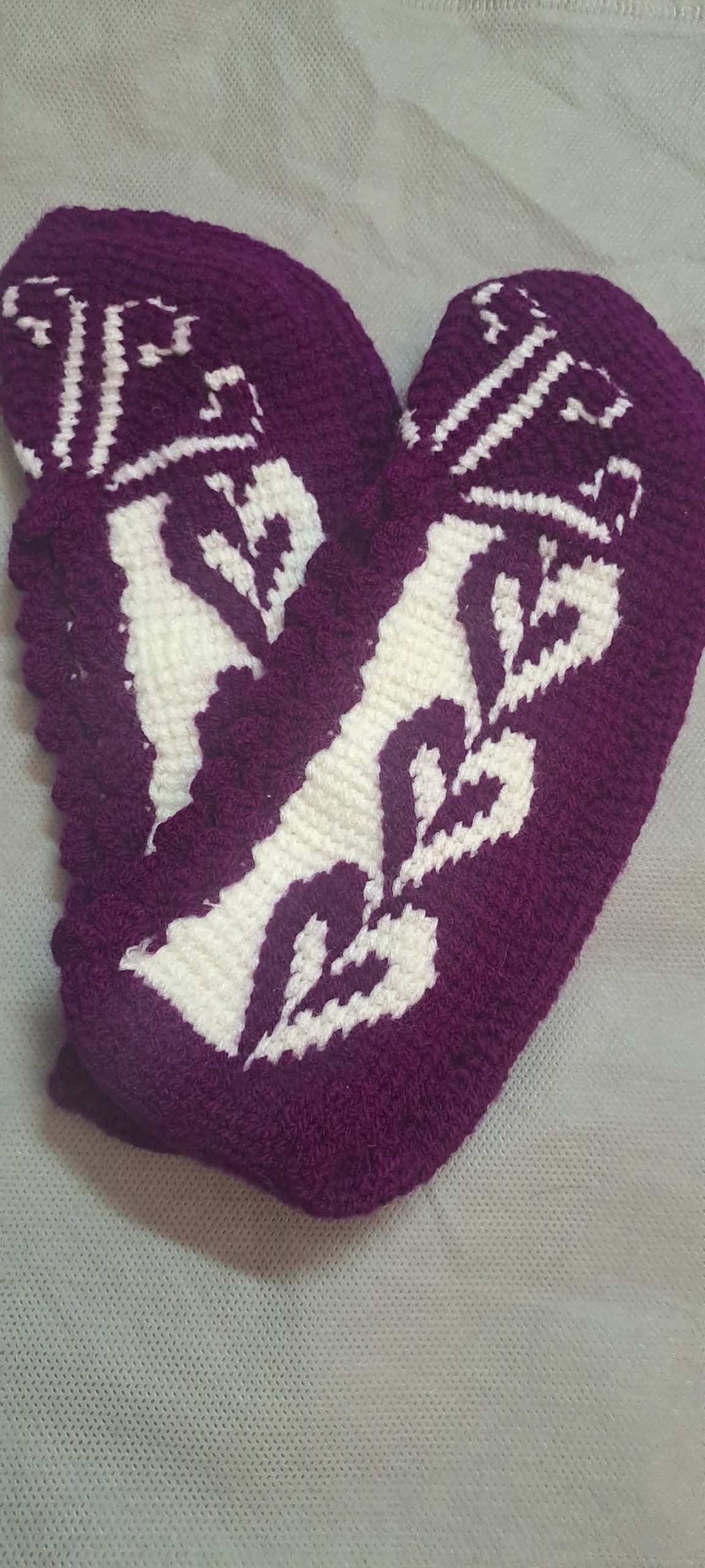 پاپوش کاموایی زنانه فری سایز بنفش بادمجانی سفید