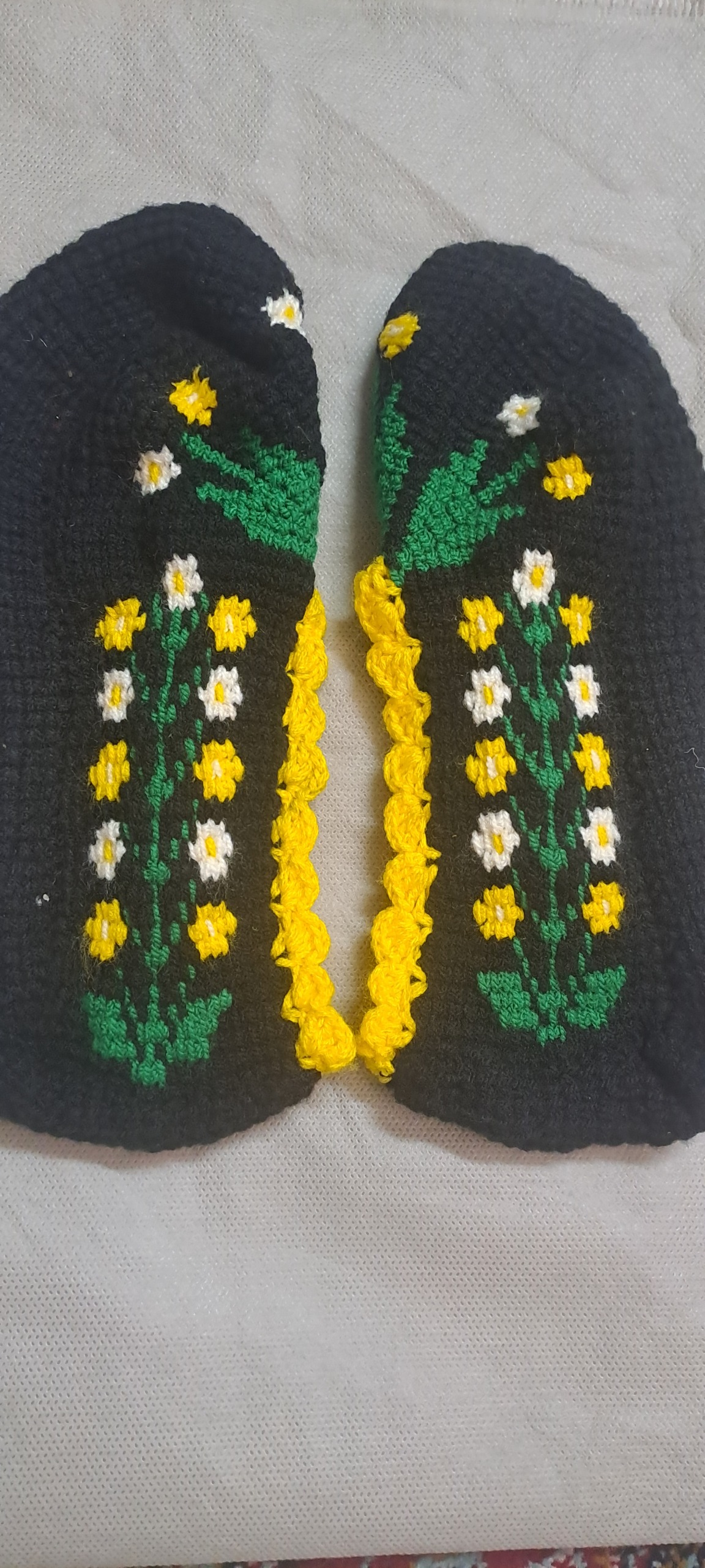 پاپوش کاموایی زنانه فری سایز مشکی طرحدار