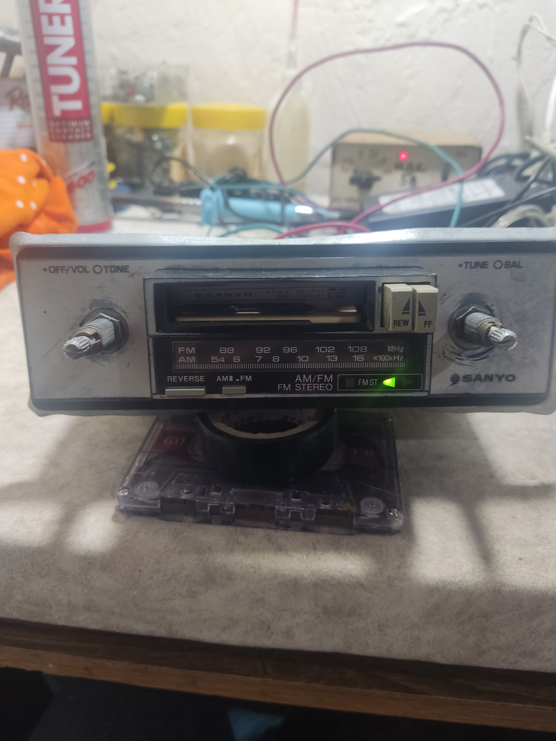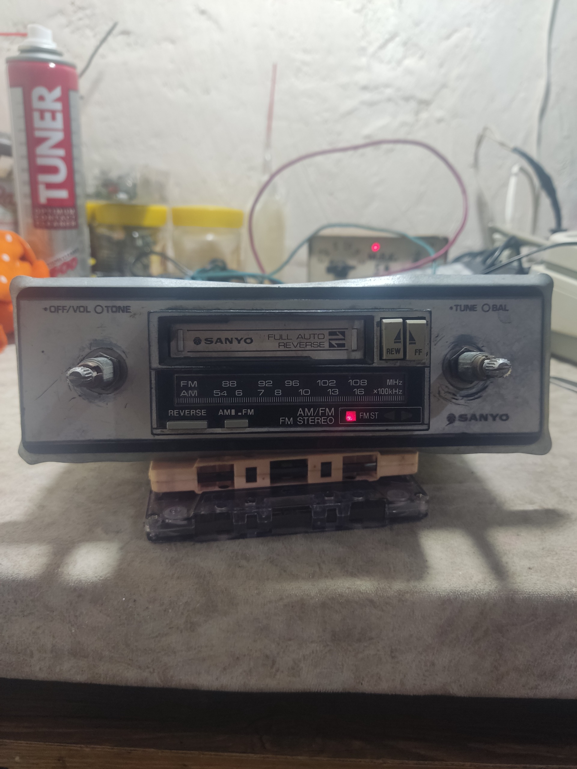 ضبط ماشین SANYO که هم رادیوش وهم کاست سالم فقط یک روکش ولوم داره اون یکی نداره و موقع پخش کاست یکی از چراغای مثلث روشن نمیشه یکیش روشن میشه کیفیت کالا مطابق با تصاویر بازم سوالی بود در خدمتم .تخفیف جزیی داره.در ضمن فیلم از کارکردش هم دارم
