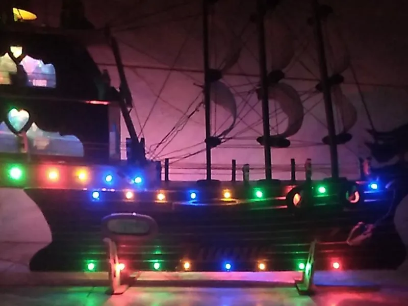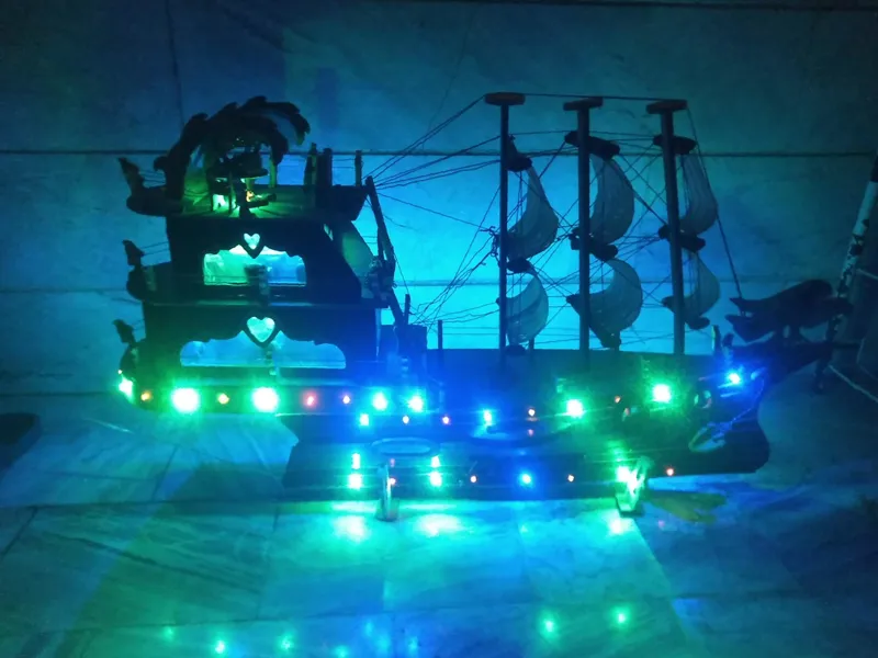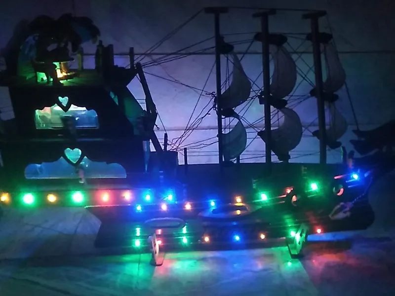 ماکت یک کشتی تفریحی که به شکل بسیار زیبا و استادانه ای نورپردازی شده است.