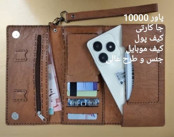 کیف پول مردانه و زنانه داراب پاوربانک 10000میلی آمپر، دارای کابل شارژ، دارای جای گوشی، دارای جای پول، دارای جای کارت ، دارای دسته چرمی، با کیفیت عالی و رنگ زیبا و خوش دست. همیشه یک پاور همراه شماست، سبک و زیبا.