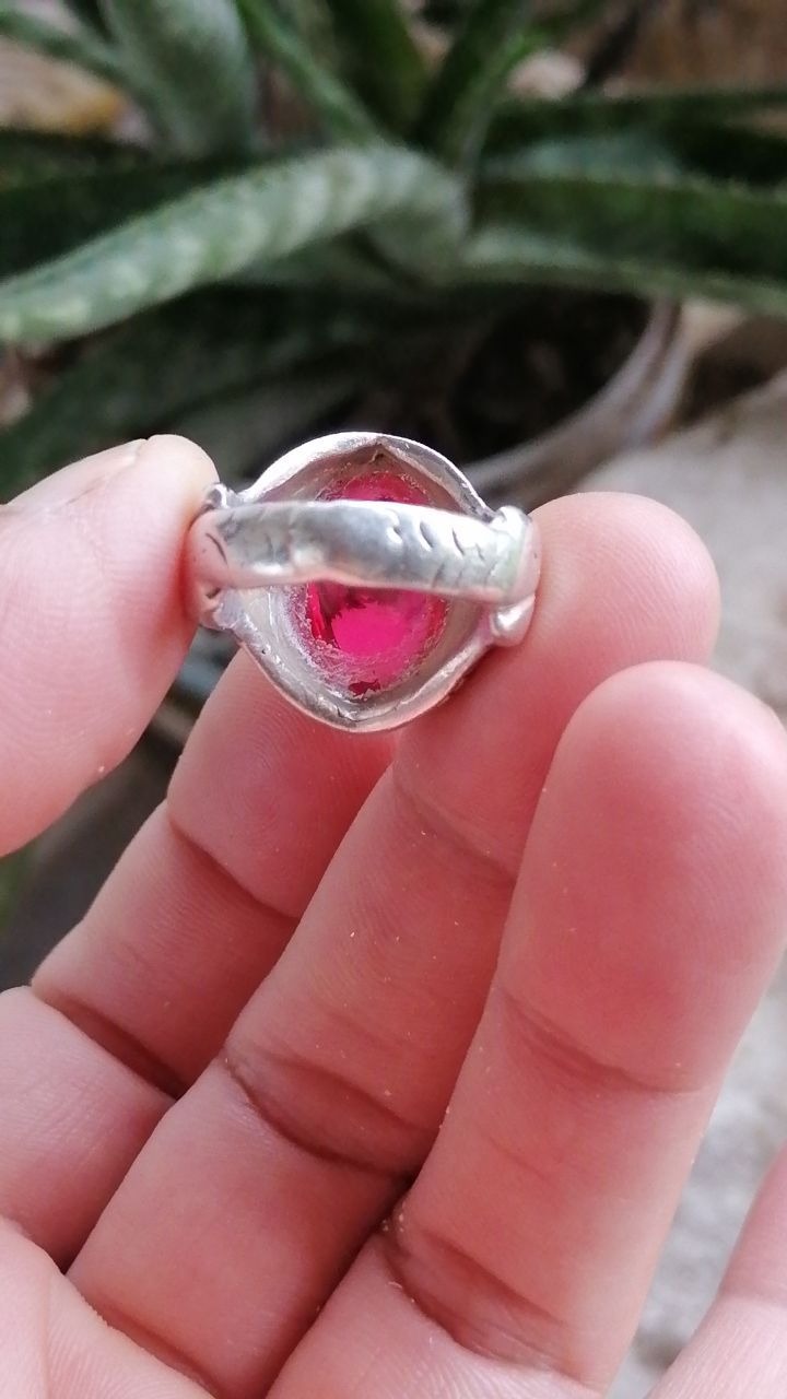 انگشتر نقره یاقوت قرمز سختی دار سنگ باکیفیت آلمان اما رکاب دستساز وقلم زنی قدیم سایز 58تا59 وزن بالای 15 گرم قیمت300 3 تومن