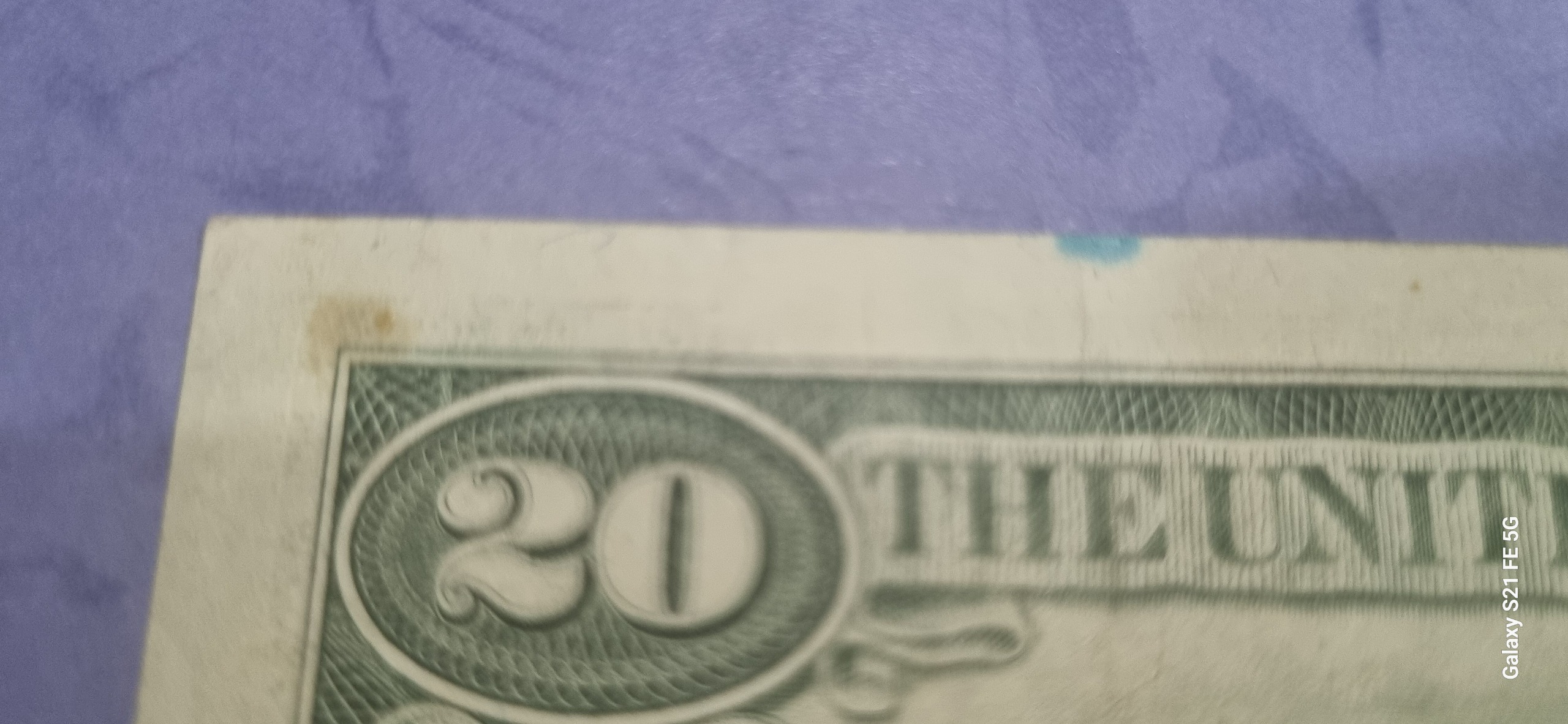لکه آبی رنگ بالای اسکناس و لکه پشت اسکناس طبق تصاویر وجود دارد . تاخوردگی دارد.