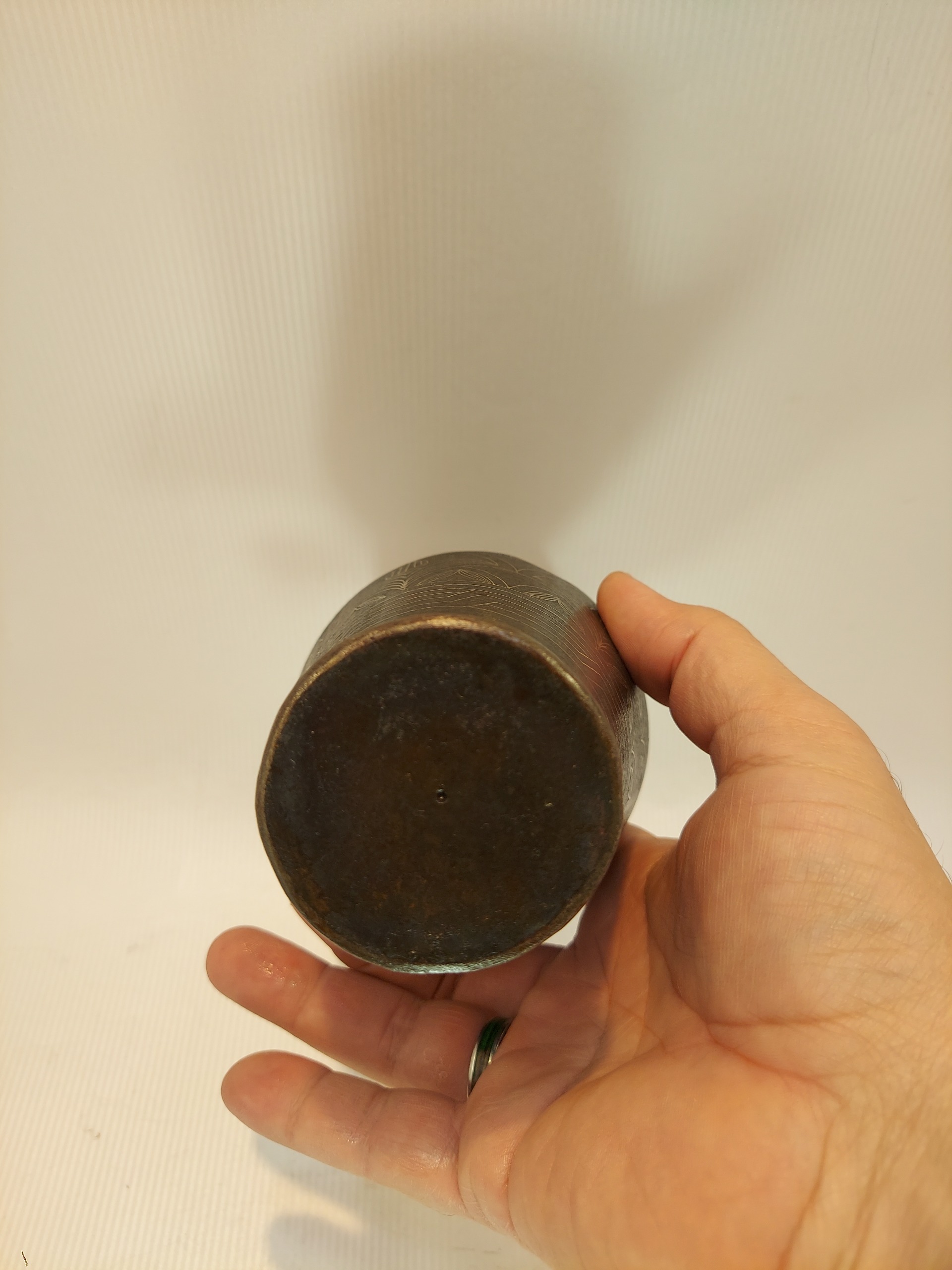 گلدان فولادی نقره کوب کهنه قاجاری عتیقه ناب