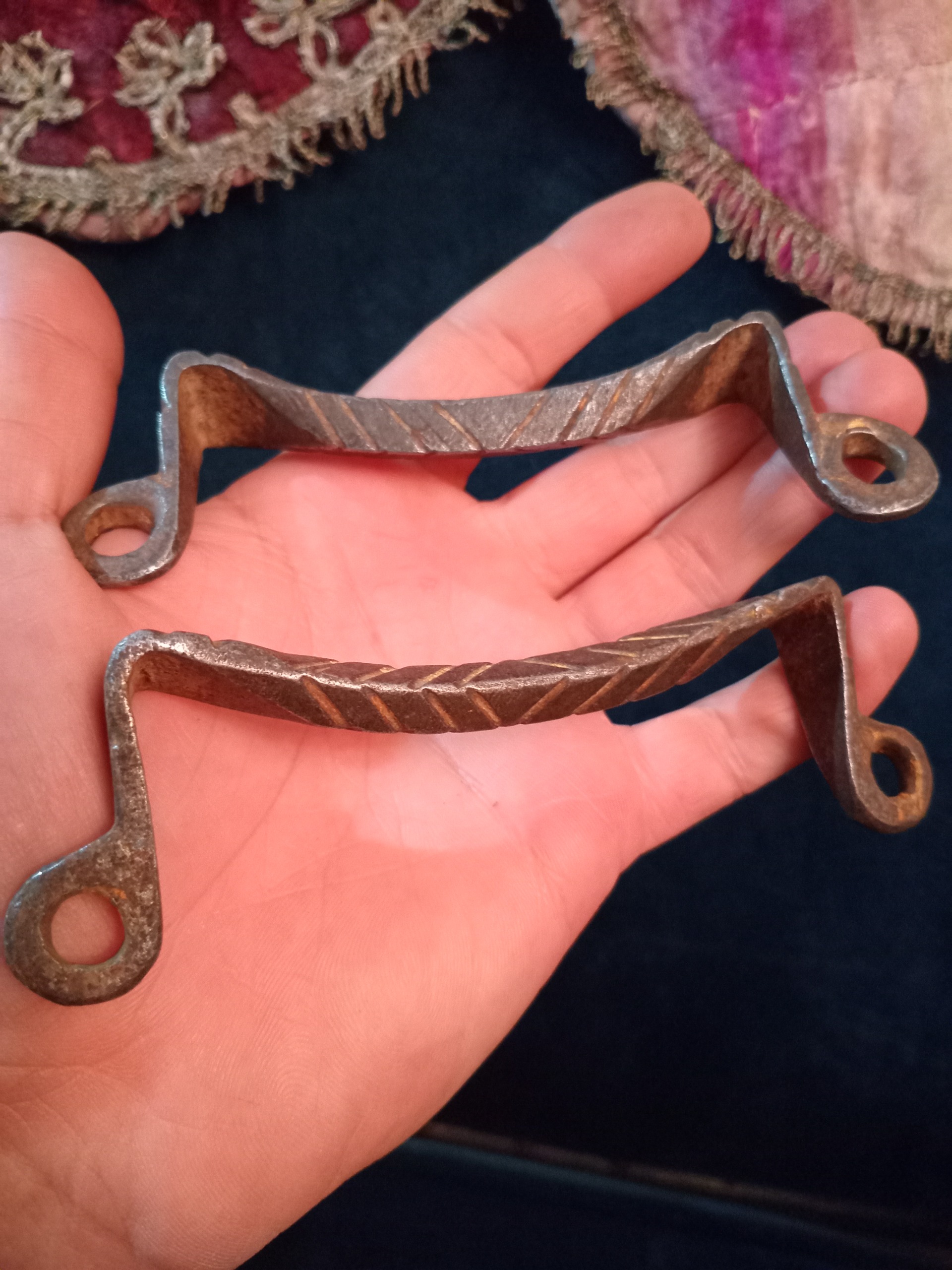 یک جفت و یک تکی دسته اُرُسی فلادی کهنه صفوی بسیار زیبا کلکسیونی کمیاب