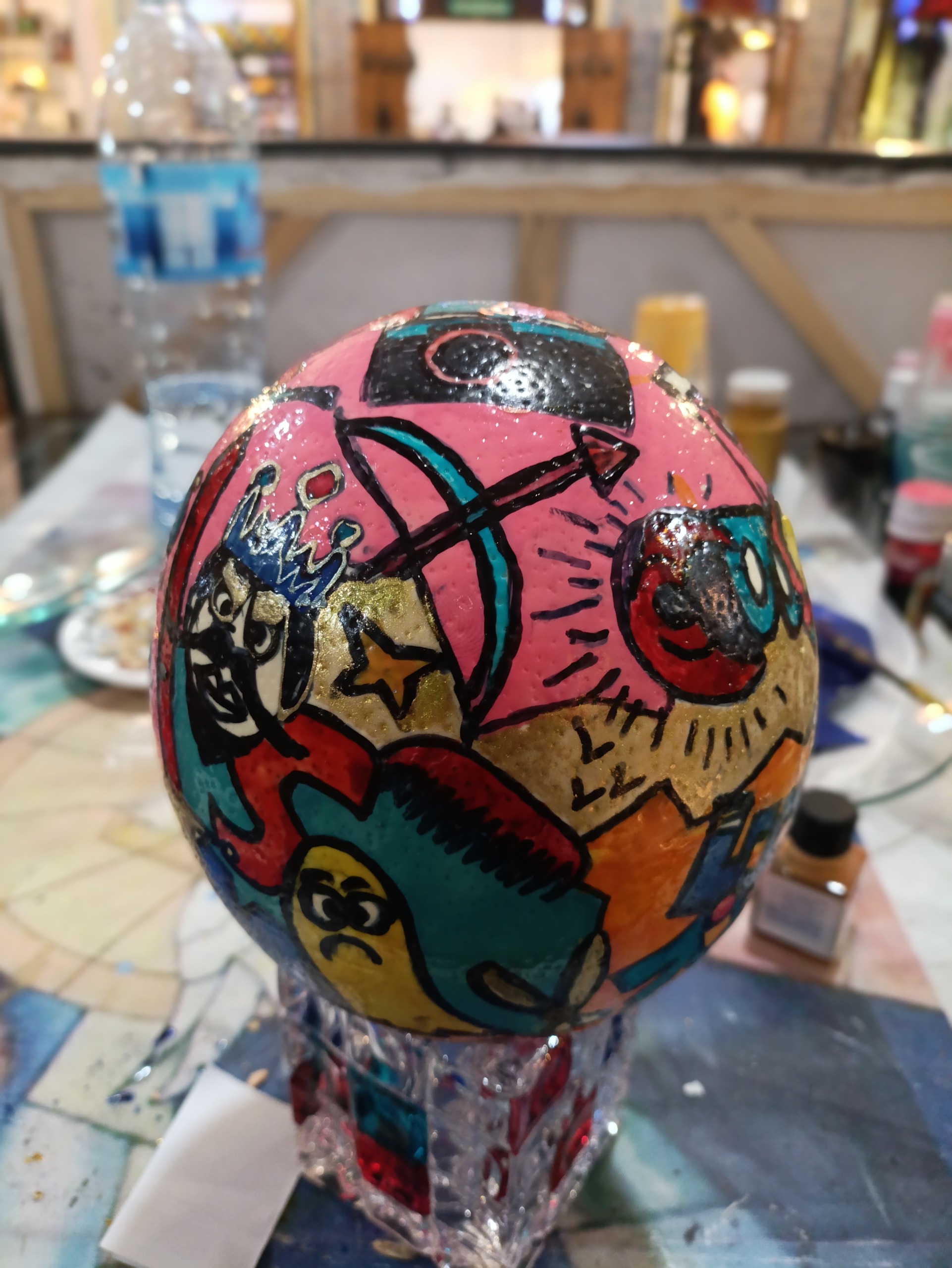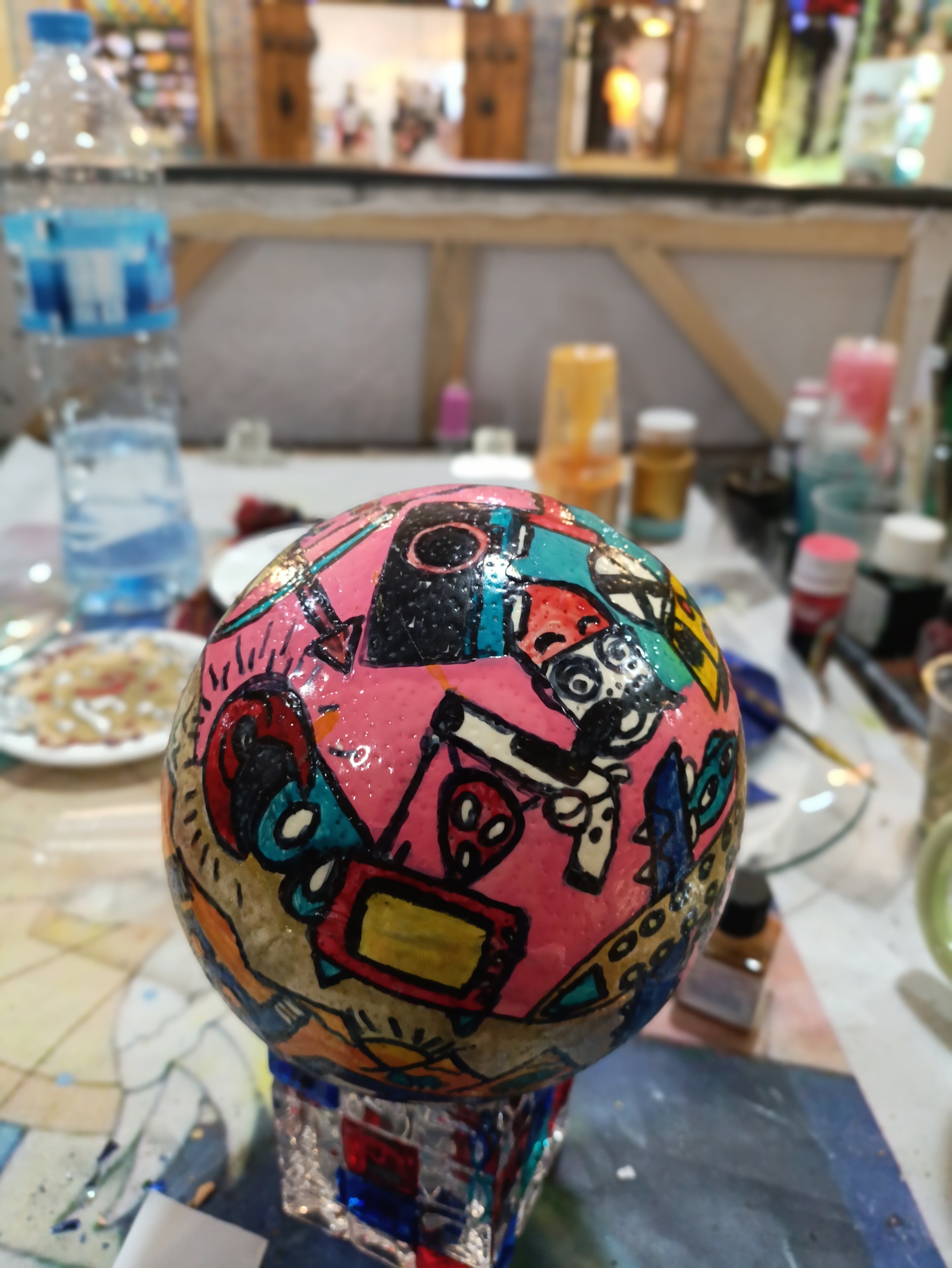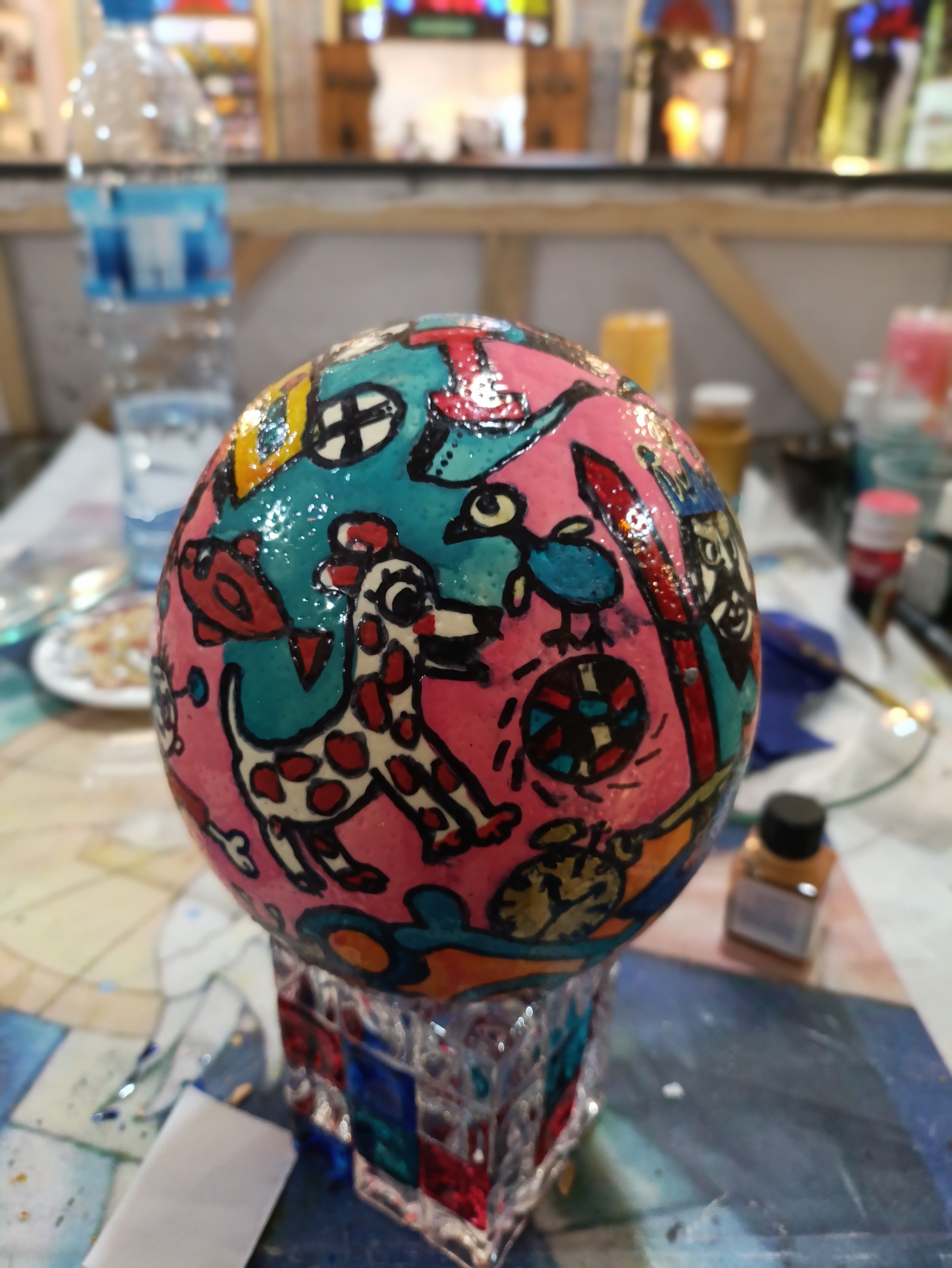 نقاشی روی تخم شتر مرغ به سبک جدید با تکنیک ویترای قابل شستشو و مقاوم در برابر نور