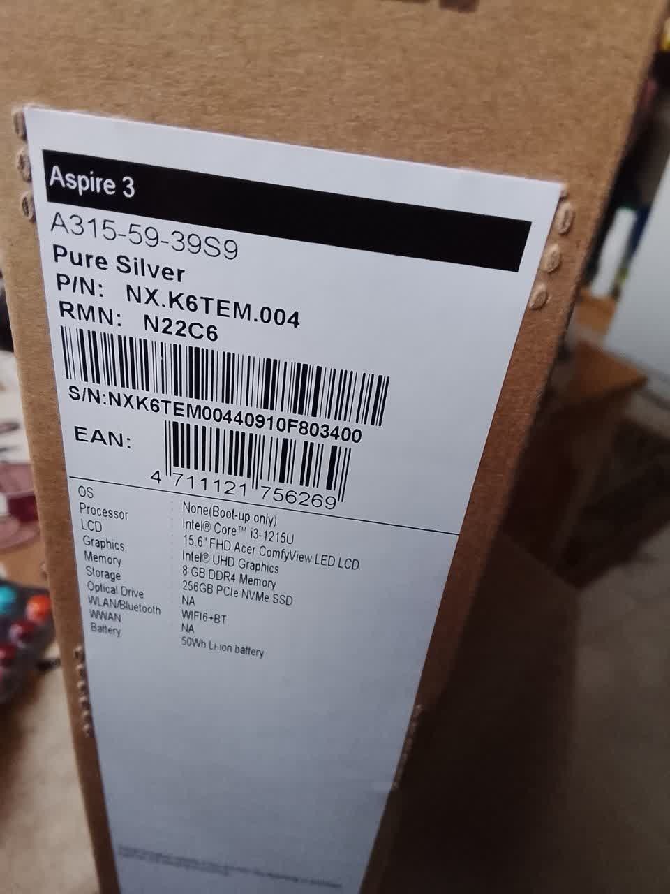 لپ تاپ ایسر مدل Aspire 3 A315-59-39S9 i3
