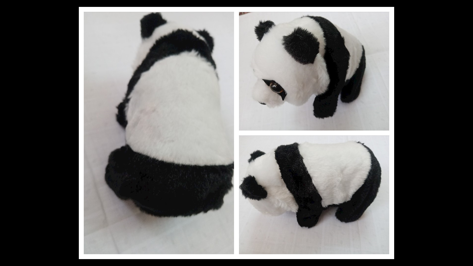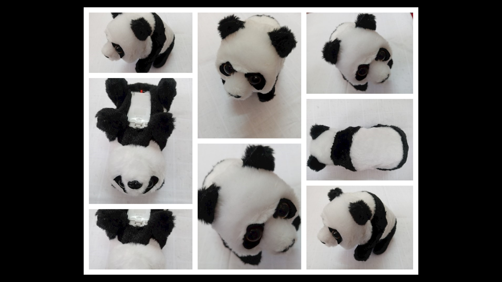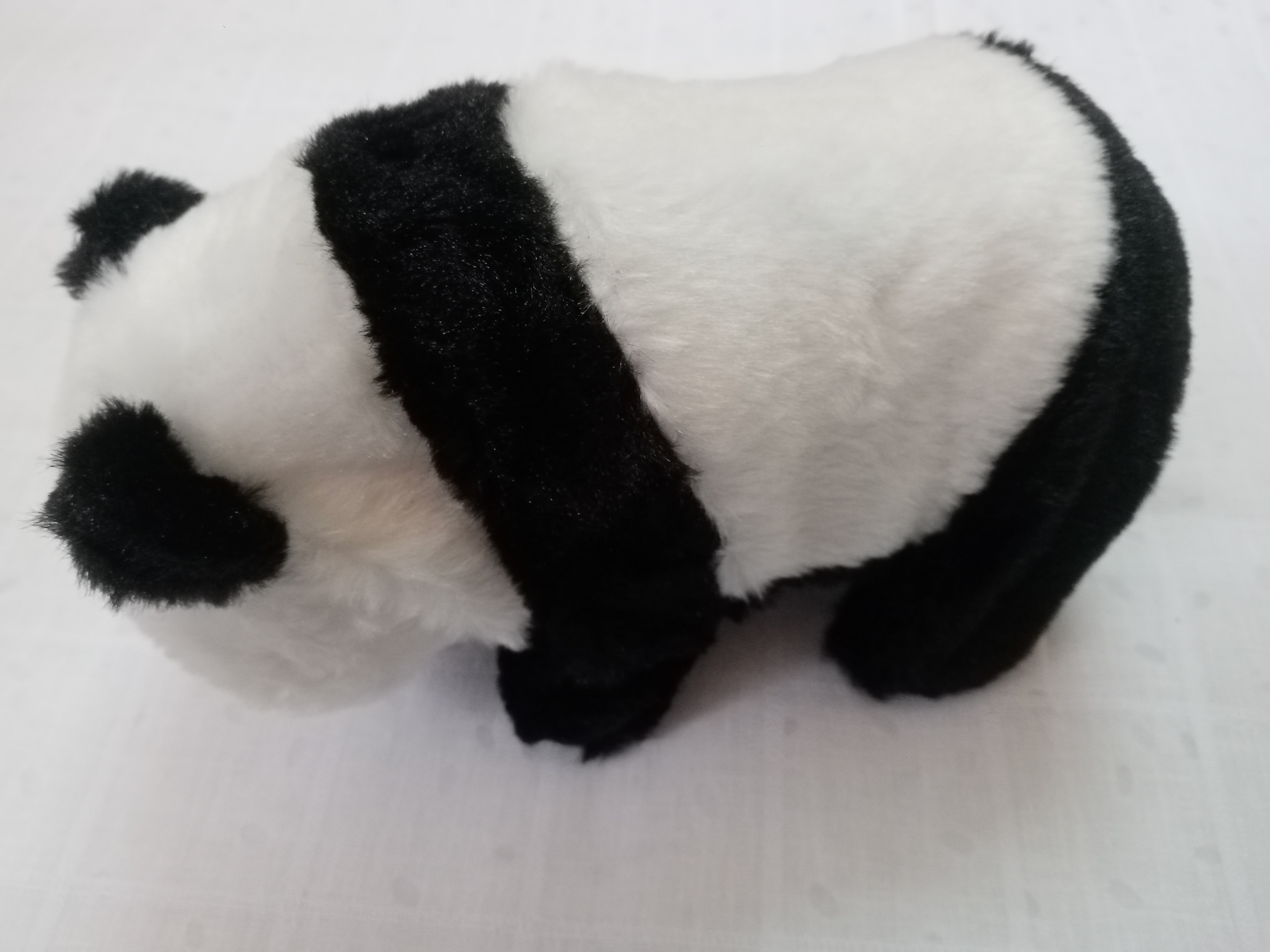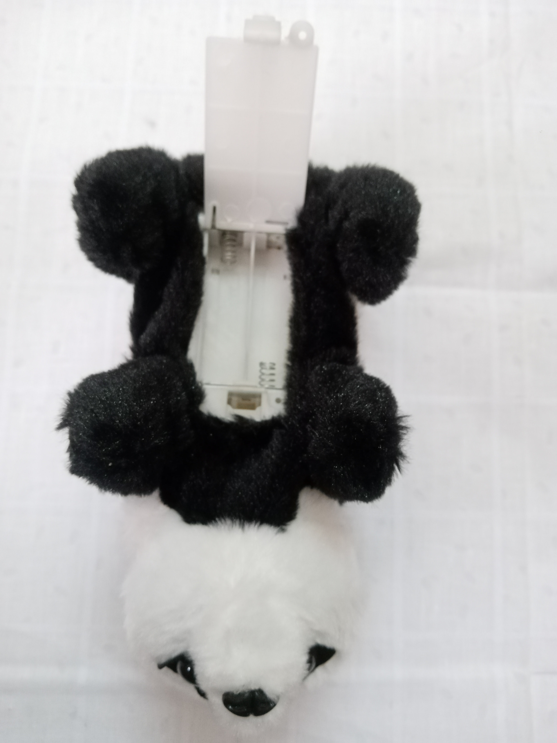 عروسک حرکتی پاندا بدنه پلاستیک و روکش خزه ای و با 2تا باتری قلمی کار میکنه باطول حدود 19سانتیمتر و بهتر روی سرامیک یا موزایک حرکت کنه زیرا حرکت بهتری داره. همینطور گردنش هم کمی تکون میده