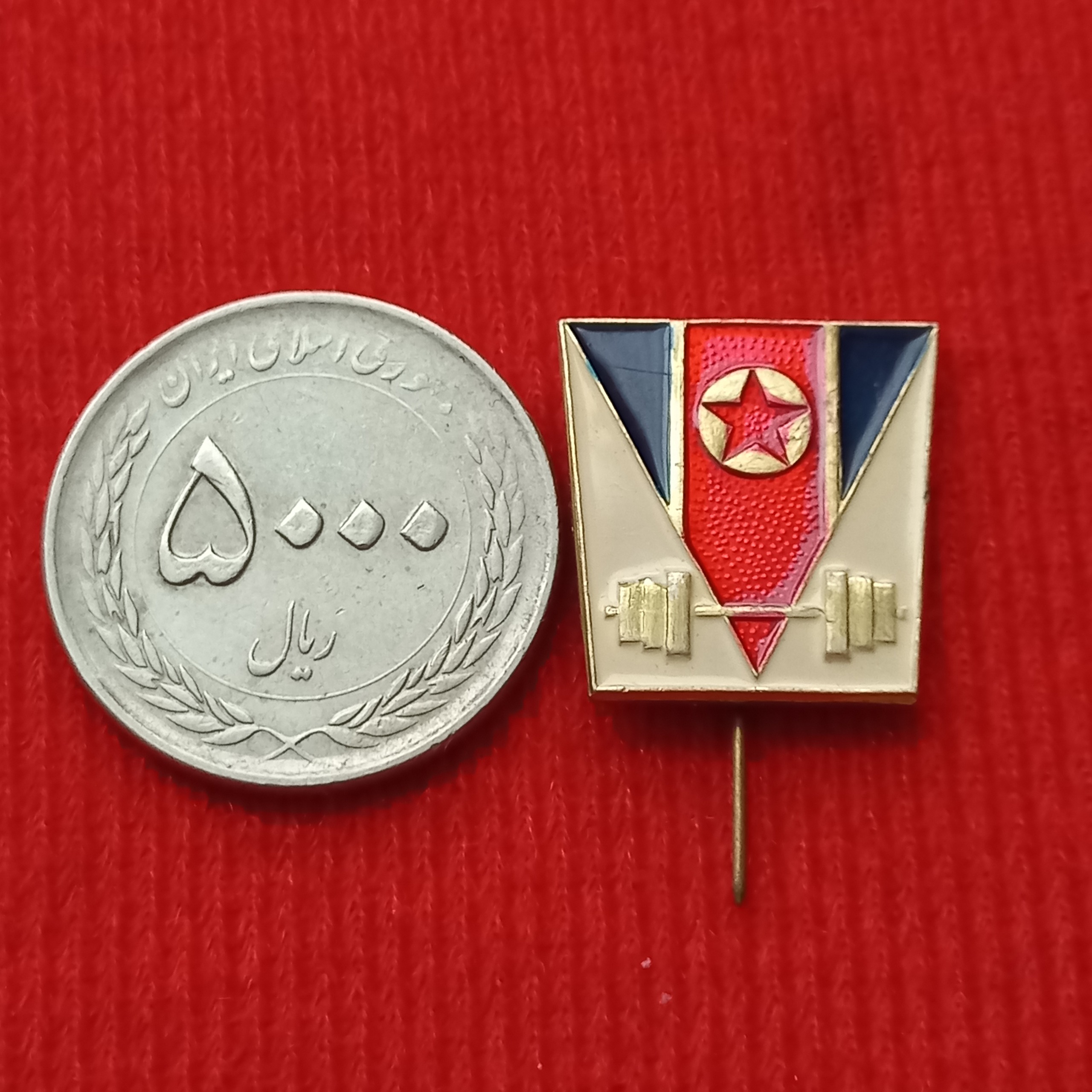 آیتم 10 - 597 _ بج / گل سینه مینا کاری زیبای تیم وزنه برداری کره شمالی در المپیک ، بانکی ، بسیار کمیاب و خاص قیمت 400 تومان.