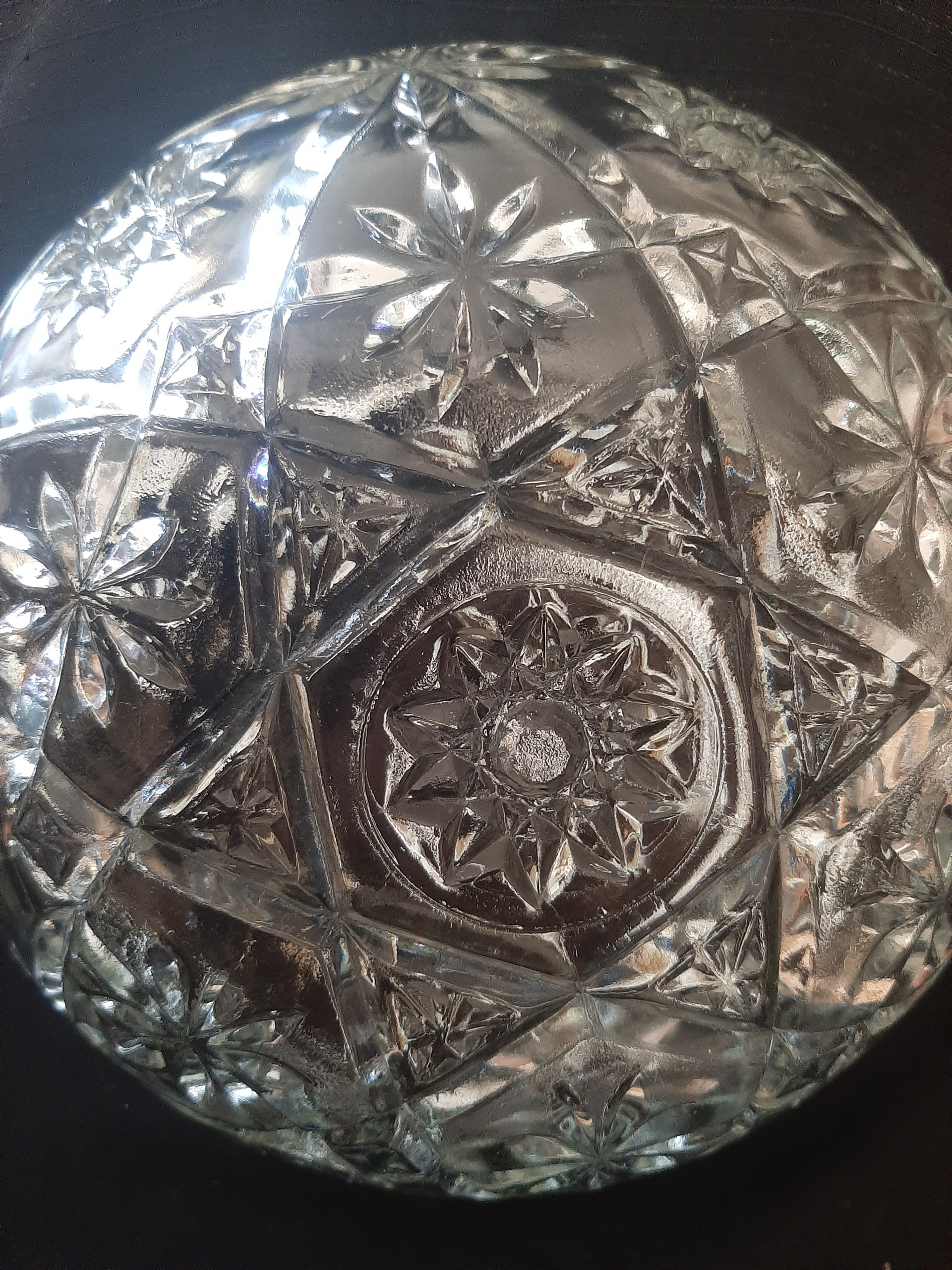 ظرف میوه یا آجیل کاسه سایز متوسط قطر 22 عمق 8 ستاره آمریکایی عکسها شفافتر از واقعیته کاسه اینقدر سفید نیست کمی کارتر از عکس است سالم بدون لبپری دستساز قدمت 60 سال