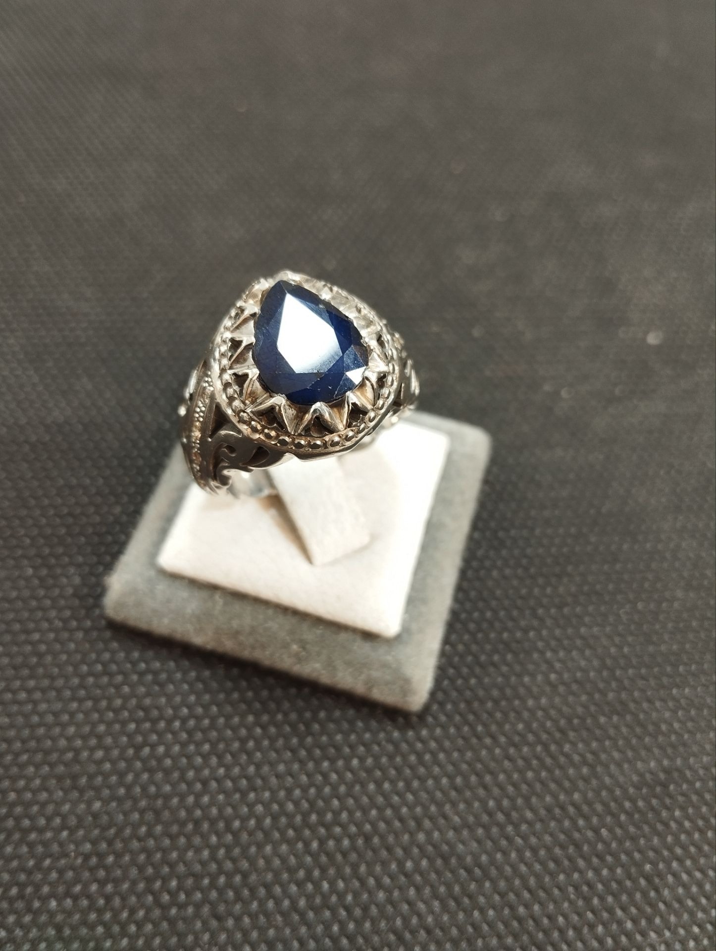 انگشتر نقره مردانه با سنگ یاقوت کبود