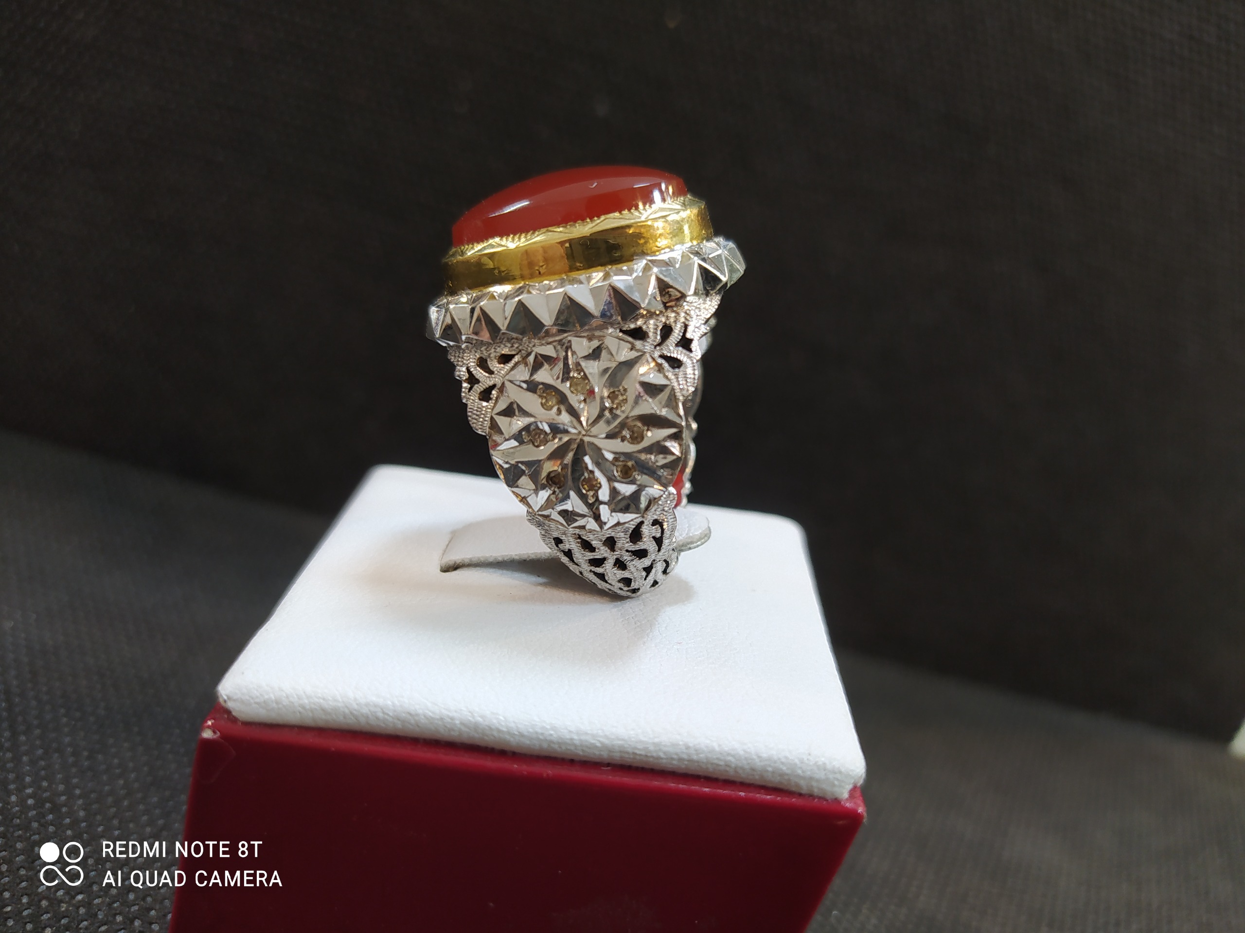 انگشتر نقره مردانه فاخر با سنگ عقیق یمنی سرخ