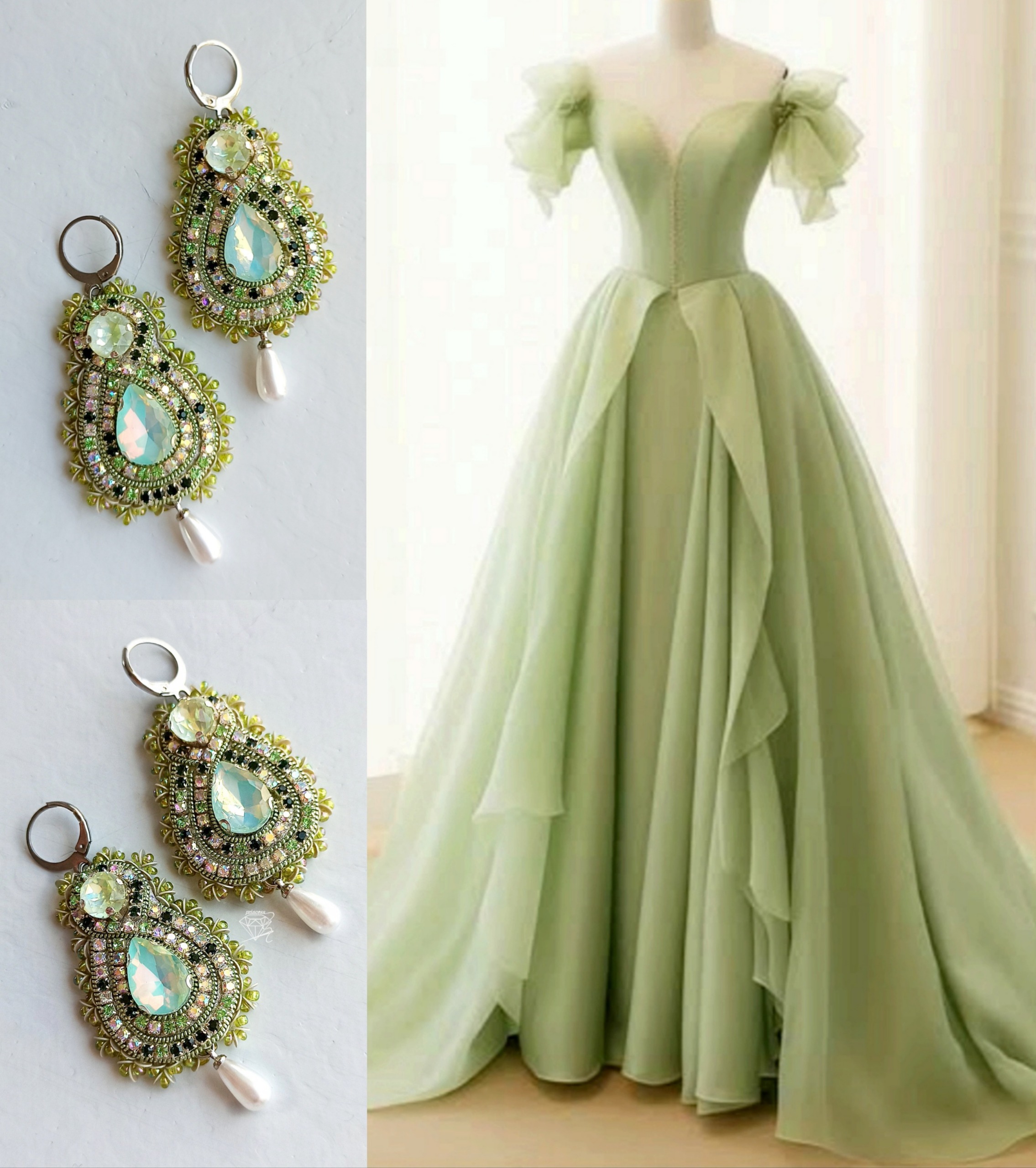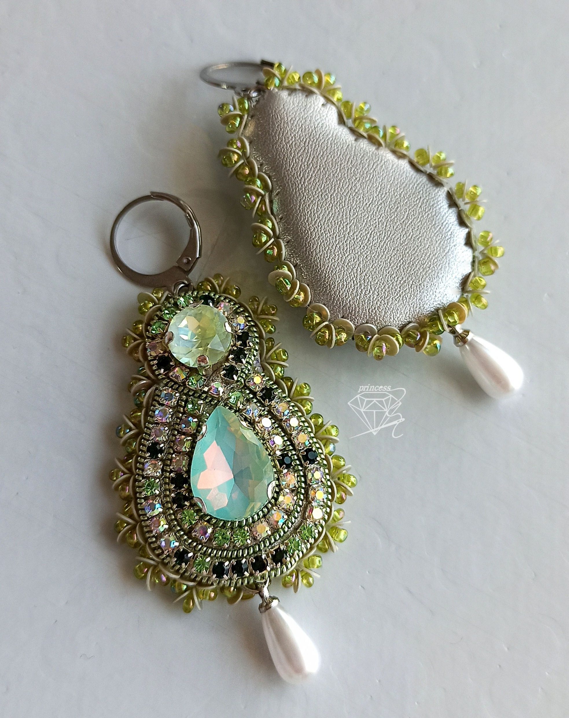 گوشواره جواهردوزی سبز زیبامون که طراحی خودم هست