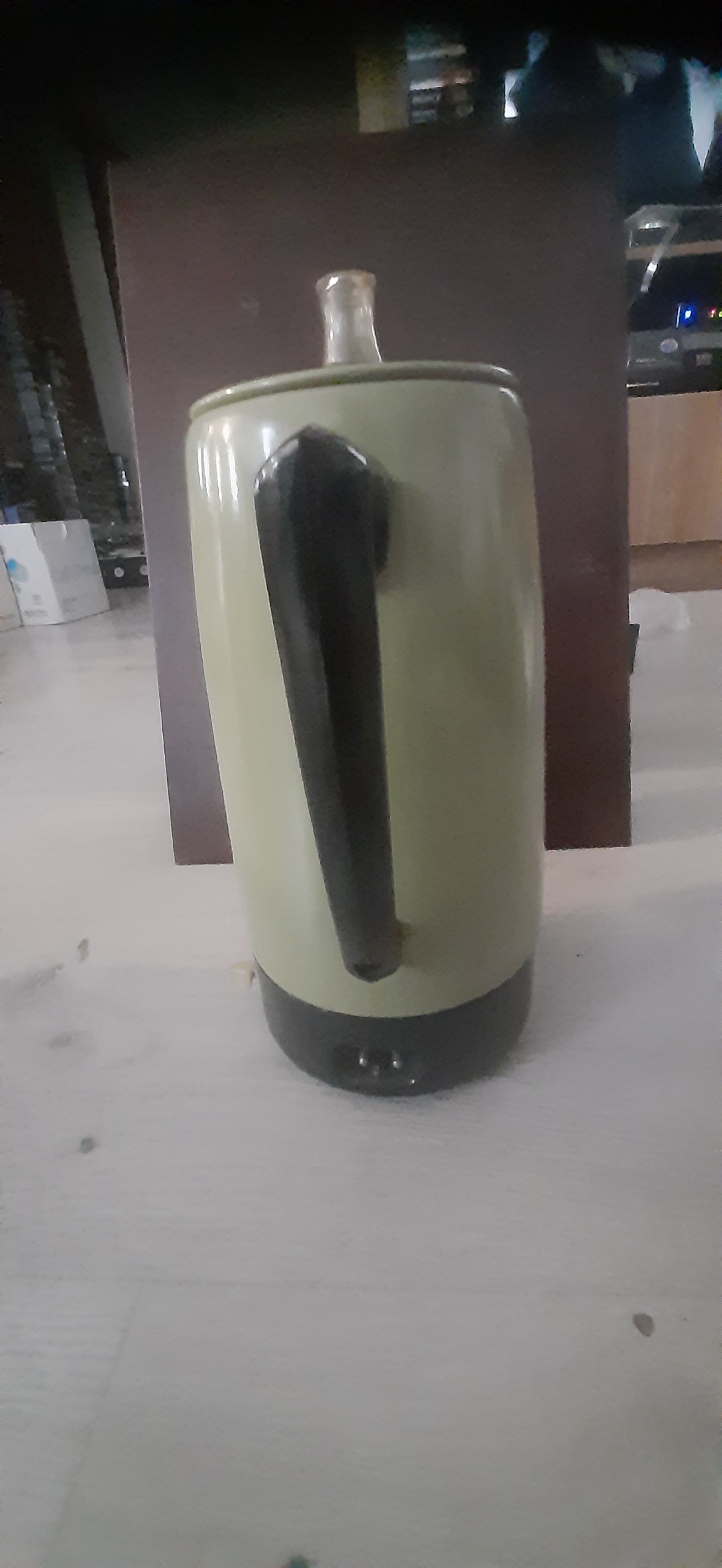 قهوه ساز برقی آمریکایی برای بیش از 60 سال پیش در حد نو ( 1/8 لیتر ) دوستان مشخصات کالا رو که در ایسام اجباری است در نظر نگیرید ، جنس بدنه کتری و داخلی کتری فلزی و عالی است بازم سوالی بود در خدمت هستم فوق الاده زیبا و تمیز بدون ایراد، کلکسیونی