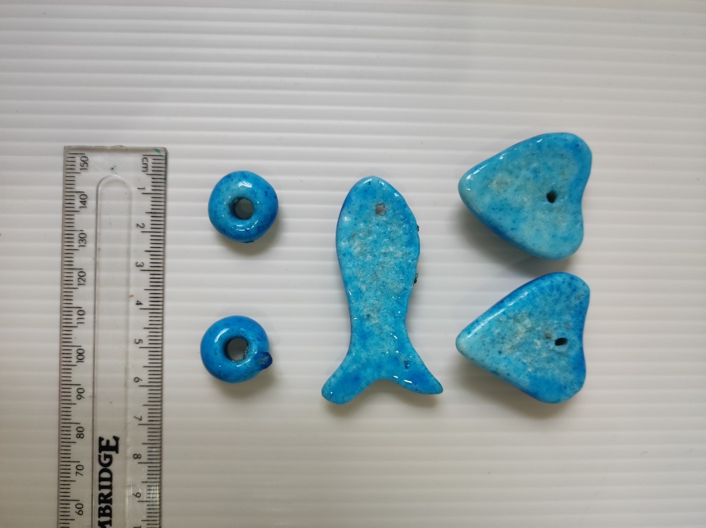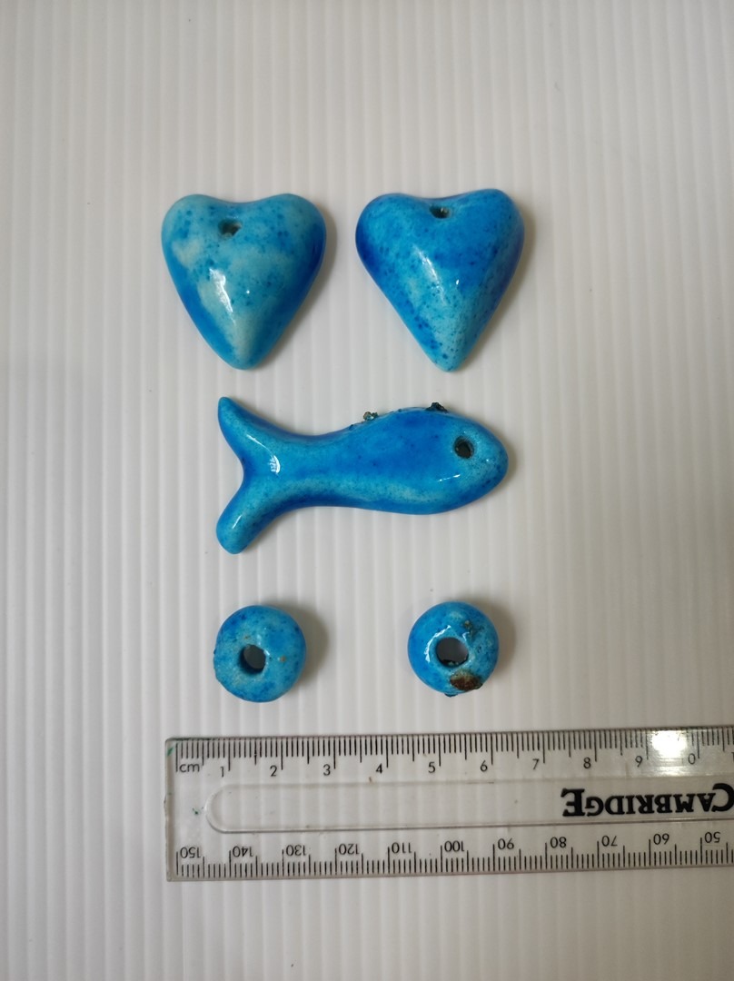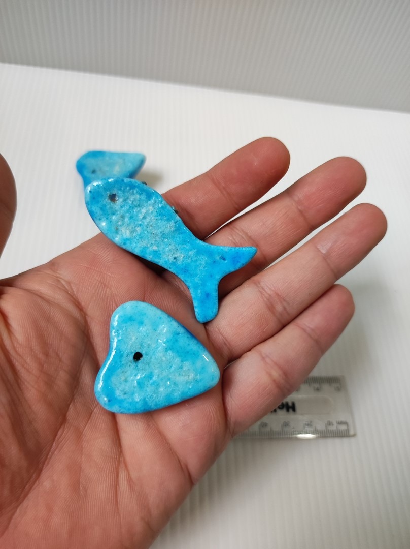 سنگ آویزگردنبندی آبی فیروزه ای قلب و ماهی و .. 6 عدد یکجا