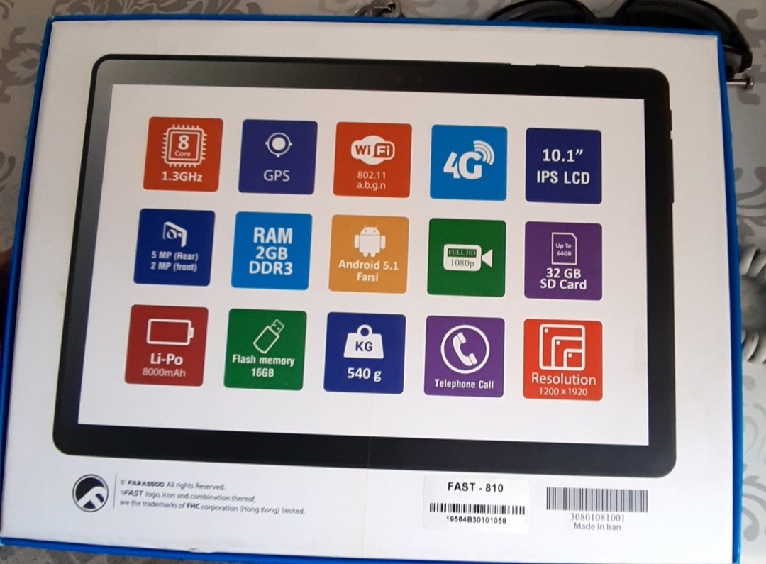 تبلت فراسوFarasoo 4G کلکسیونی پرقدرت باجعبه وسایل