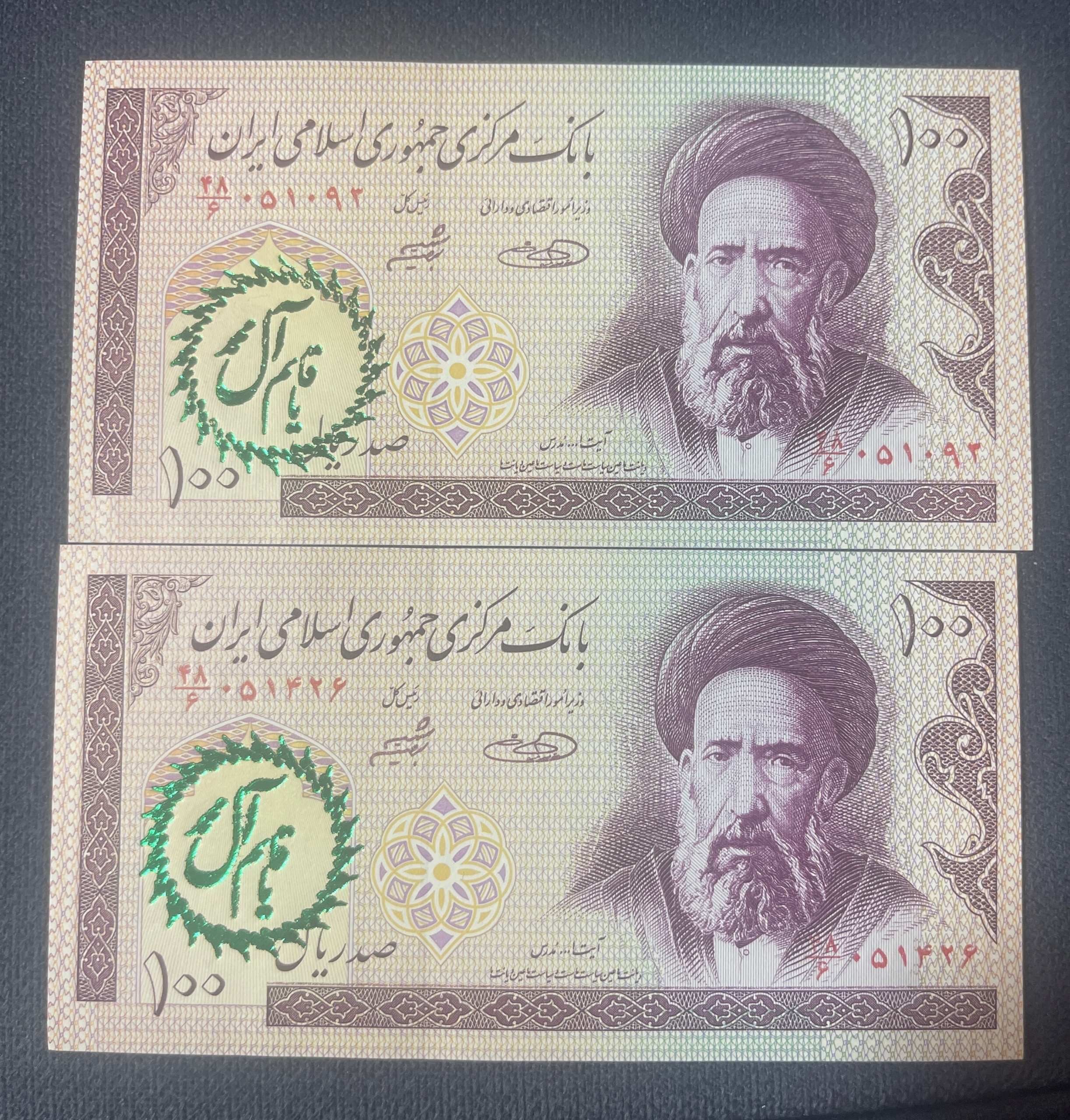 2 عدد اسکناس نو با مهر طلا کوب ( سبز)