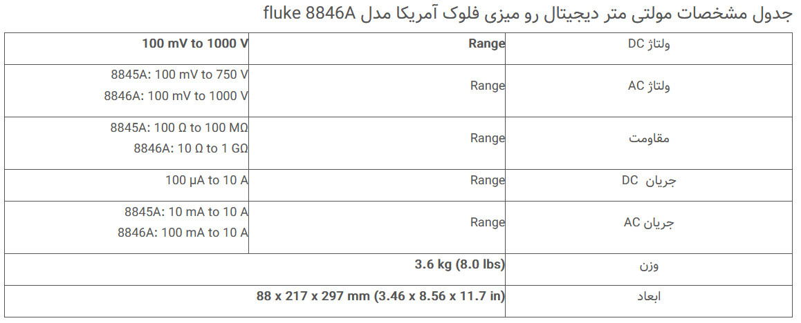 مشخصات فنی مولتی متر رومیزی دیجیتال فلوک مدل FLUKE 8846A: